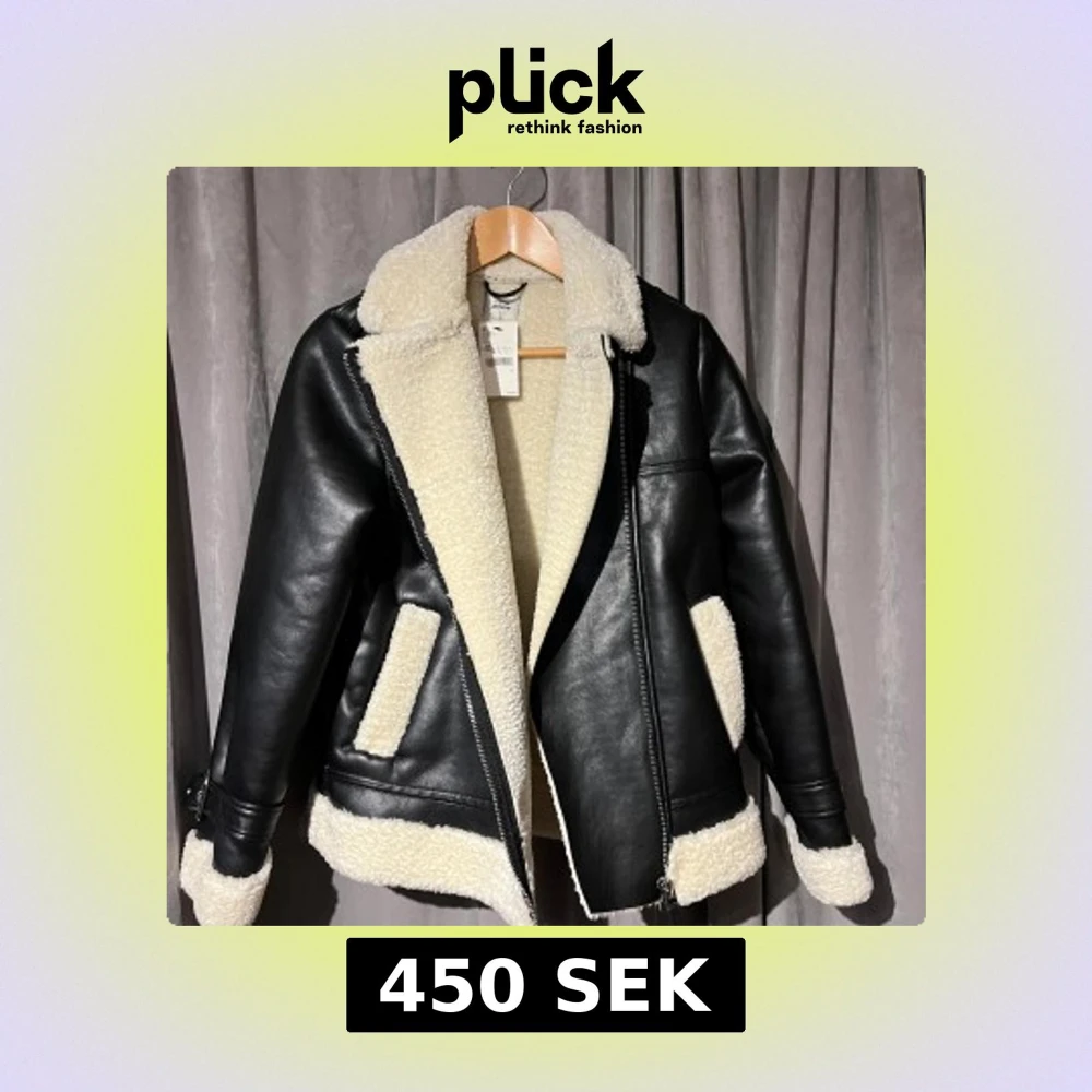 Snygg svart skinnjacka från Pimkie med mjukt vitt foder. Jackan har dragkedja och bälte vid ärmsluten. Perfekt för kyligare dagar! Helt ny!