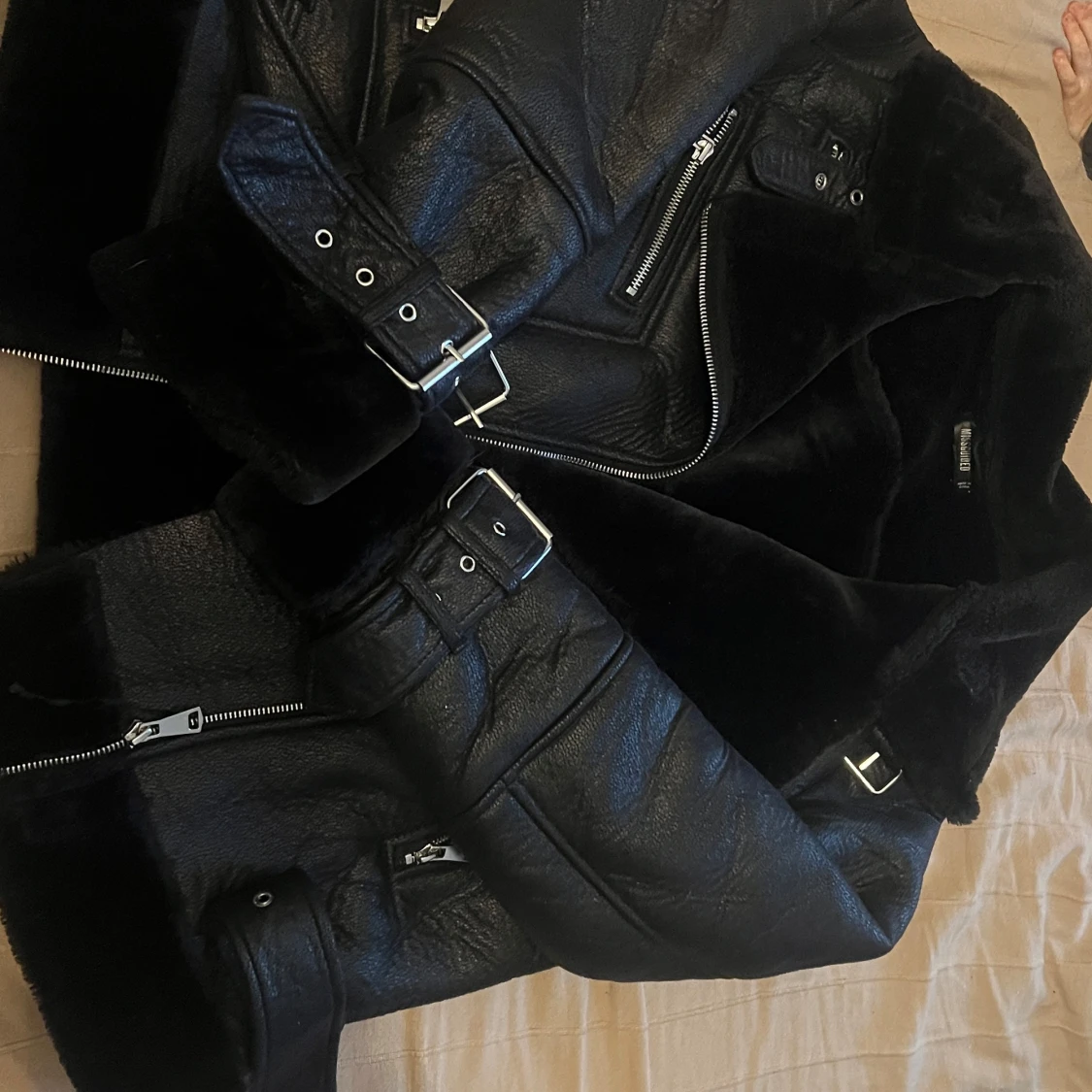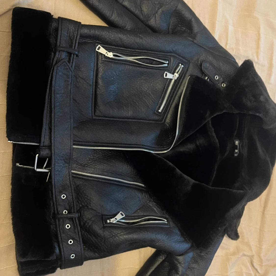 Säljer en snygg svart jacka från Missguided i storlek XS. Jackan har en cool bikerstil med dragkedjor och bältesdetaljer. Den är fodrad med mjukt material för extra värme. Perfekt för höst och vinter!