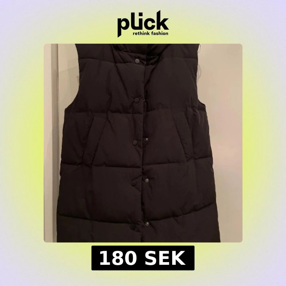 Säljer en svart vadderad väst från Pieces i storlek XS. Västen har knappar framtill samt huva och är perfekt för kyligare dagar. Den är stilren och enkel att matcha med olika outfits.