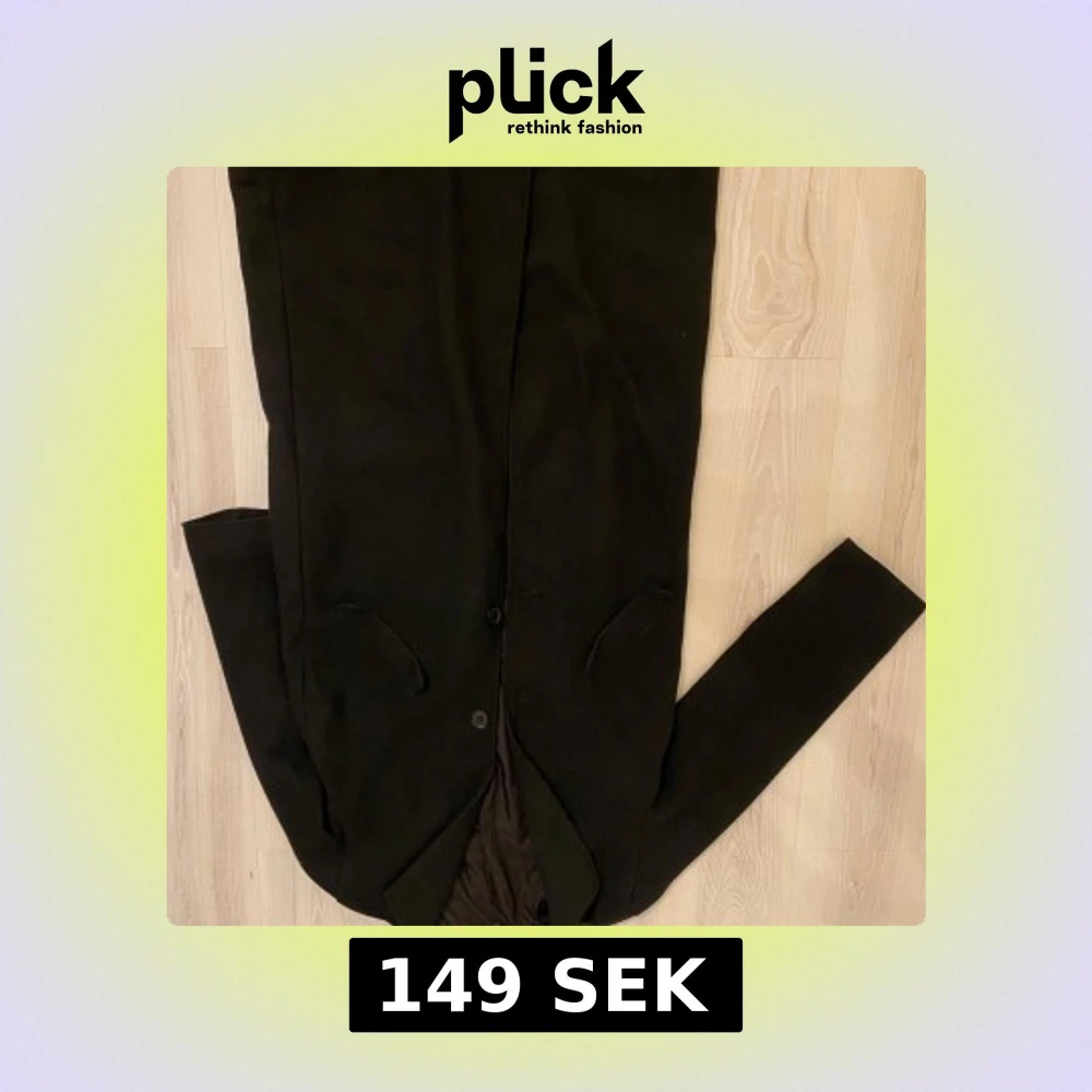 Säljer en lång svart kappa från H&M Divided i storlek XS. Klassisk rak modell med knäppning framtill och två fickor. Perfekt för dig som gillar stilrena och tidlösa plagg.