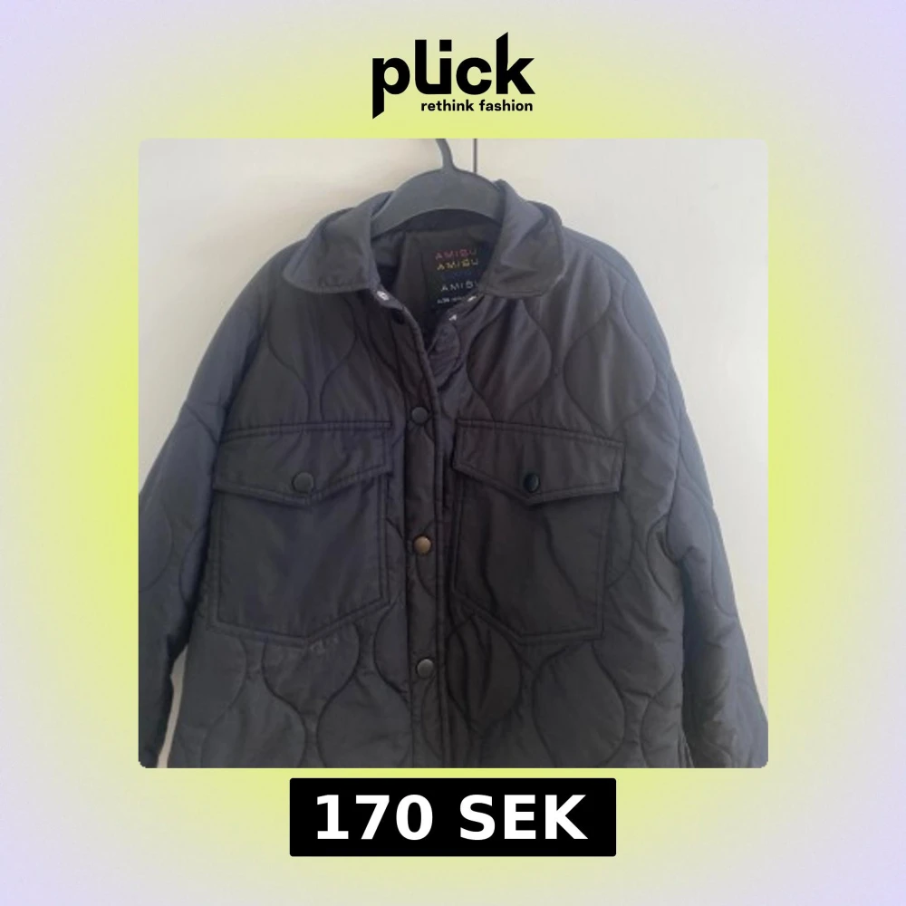 Säljer en svart quiltad jacka från Amisu i storlek XS. Jackan har två stora bröstfickor med knappar och tryckknappar längs hela framsidan. Perfekt för lager-på-lager under kyliga dagar.