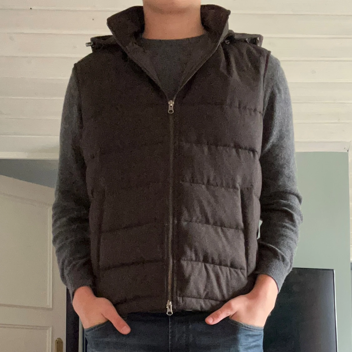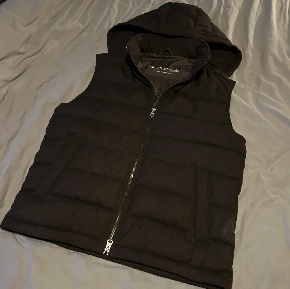Skön väst från Bruun & Stengade i modellen Minneapolis. Påminner mycket i utseendet om Stenströms Manchester-väst. Nyskick & perfekt nu framåt höstkanten. Nypris ligger på 2199kr. (Luva på & avtagbar)