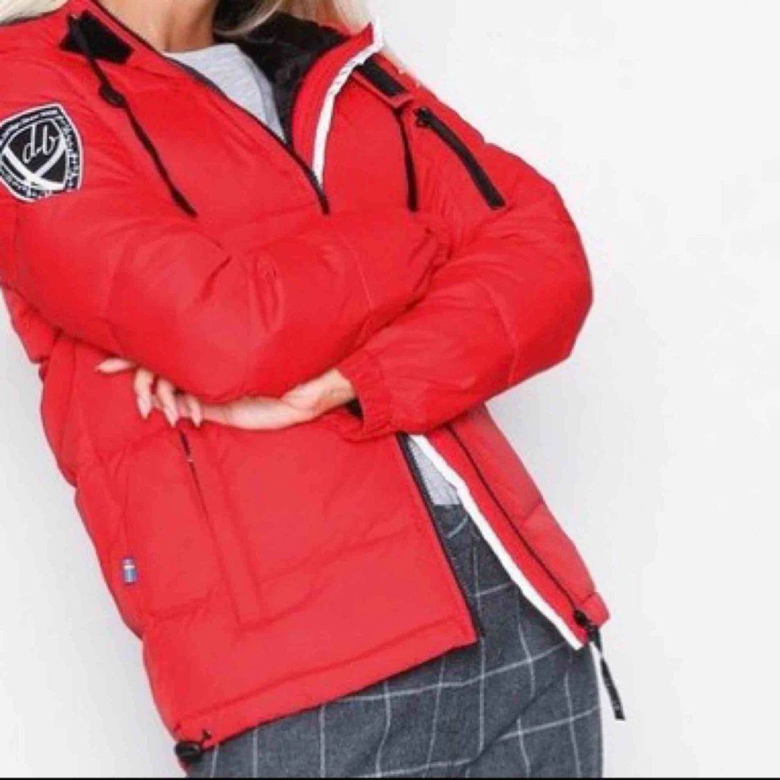 Säljer en röd dbrnad jacka i storleken M. Jackan är väll använd