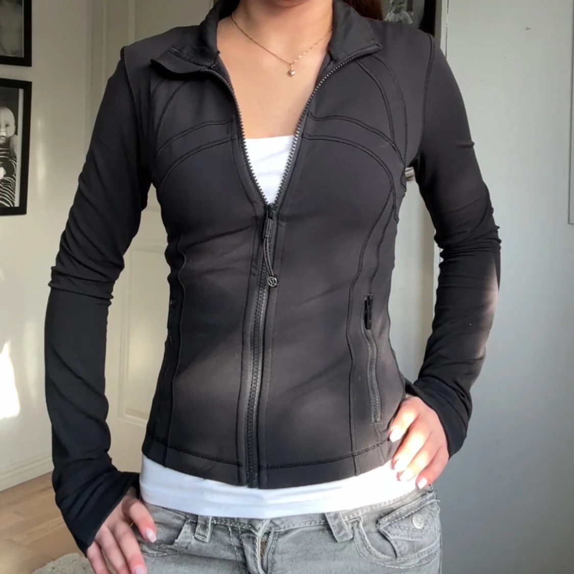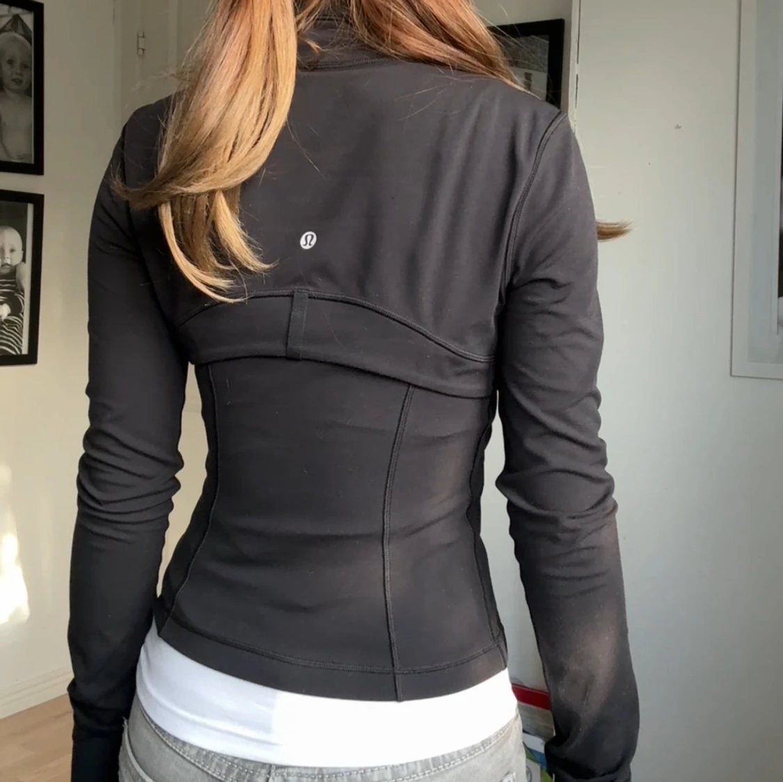 Jättefin cropped Lululemon define jacket i storlek 2, materialet Nulu, säljes för att jag har 2 och använder inte denna. Använd sparsamt och väldigt lite, nypris 1280kr, mitt pris 990kr. Skriv vid frågor eller funderingar. Obs, jag har klippt bort lappen i nacken.