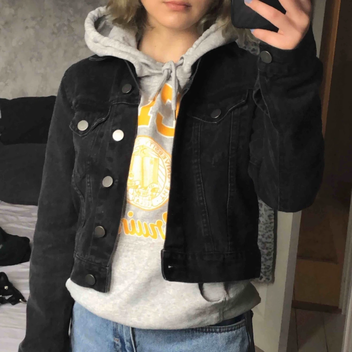En något croppad jeansjacka från ASOS! Den är rätt kort i modellen, skulle säga att den passar en XS bra. Den är använd ett fåtal gånger endast. Jag står för frakten och betalning sker via swish:))