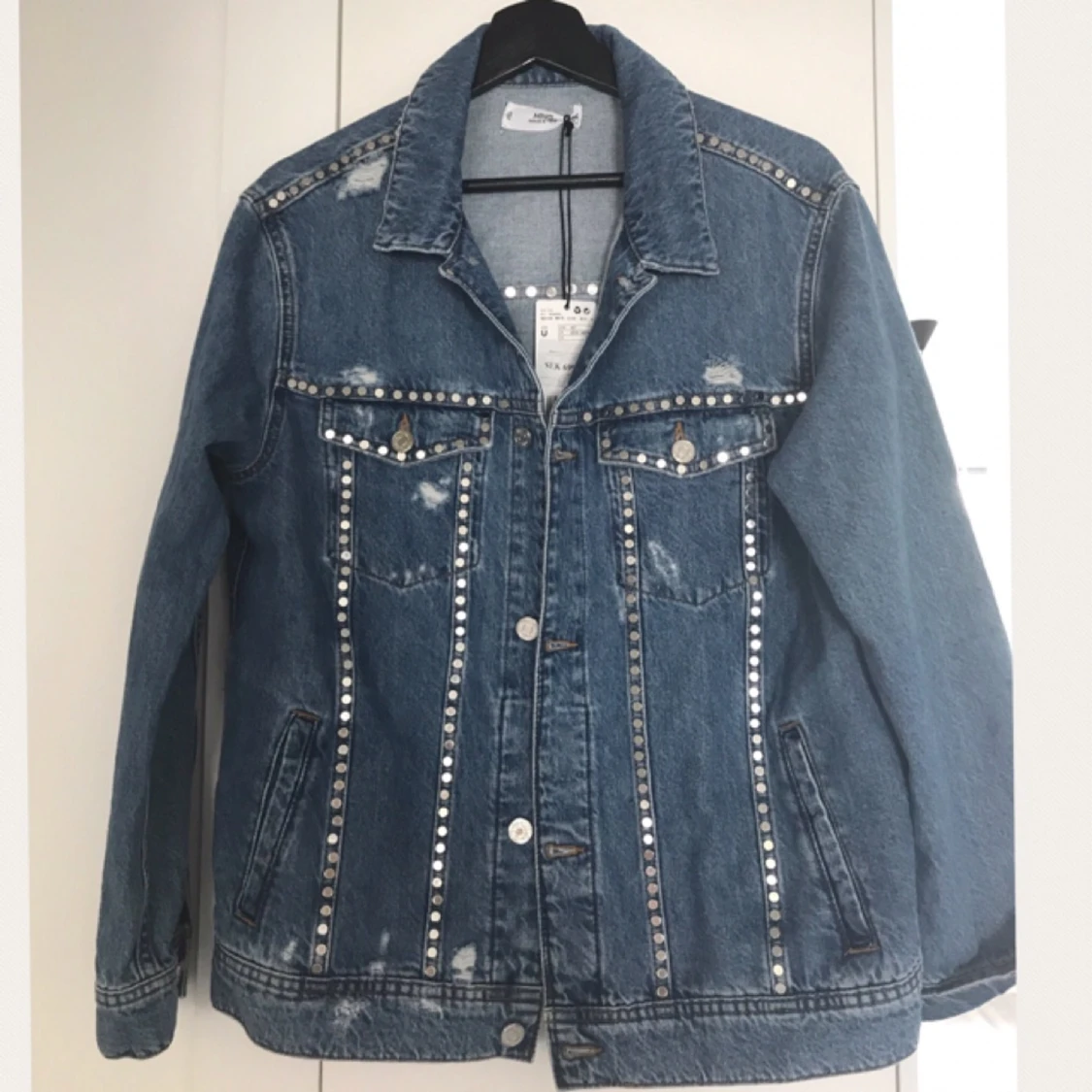 Jeansjacka med platta silvernitar, inköpt på Mango för 700kr, aldrig använd med lappar kvar. Jeanstyget är mjukt så den är superskön att ha på sig! Storleken är One Size så det beror bara på vilken passform man föredrar.