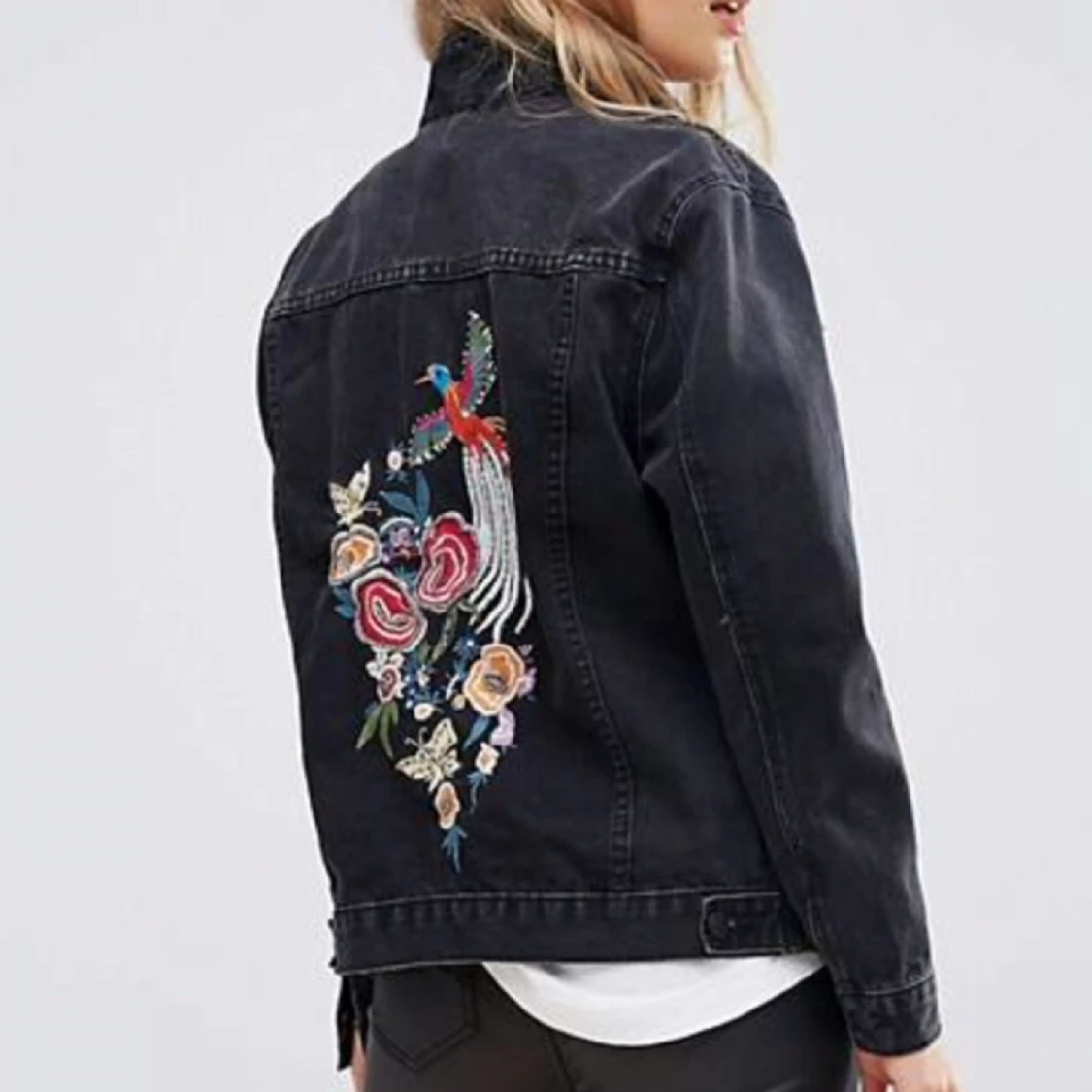 Skitsnygg jeansjacka med broderier och pärlor, helt ny med lappar kvar då jag inte tyckte den passade mig💔 storlek är S och då är den lite oversize, jag tycker den sitter bra på en M också.