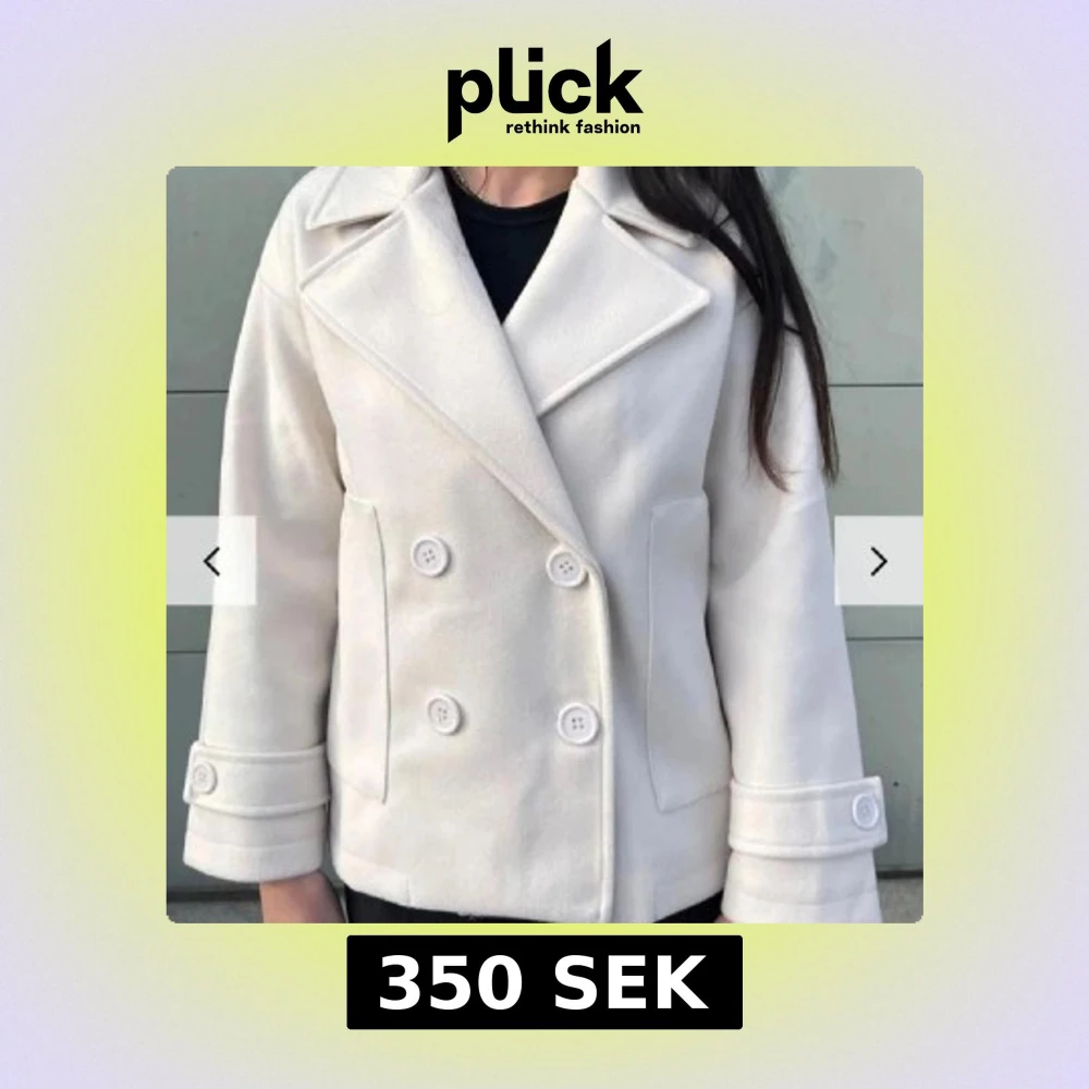Snygg vit kappa med dubbelknäppning och bred krage från design by si i storleken s/m. Nypris runt 700kr