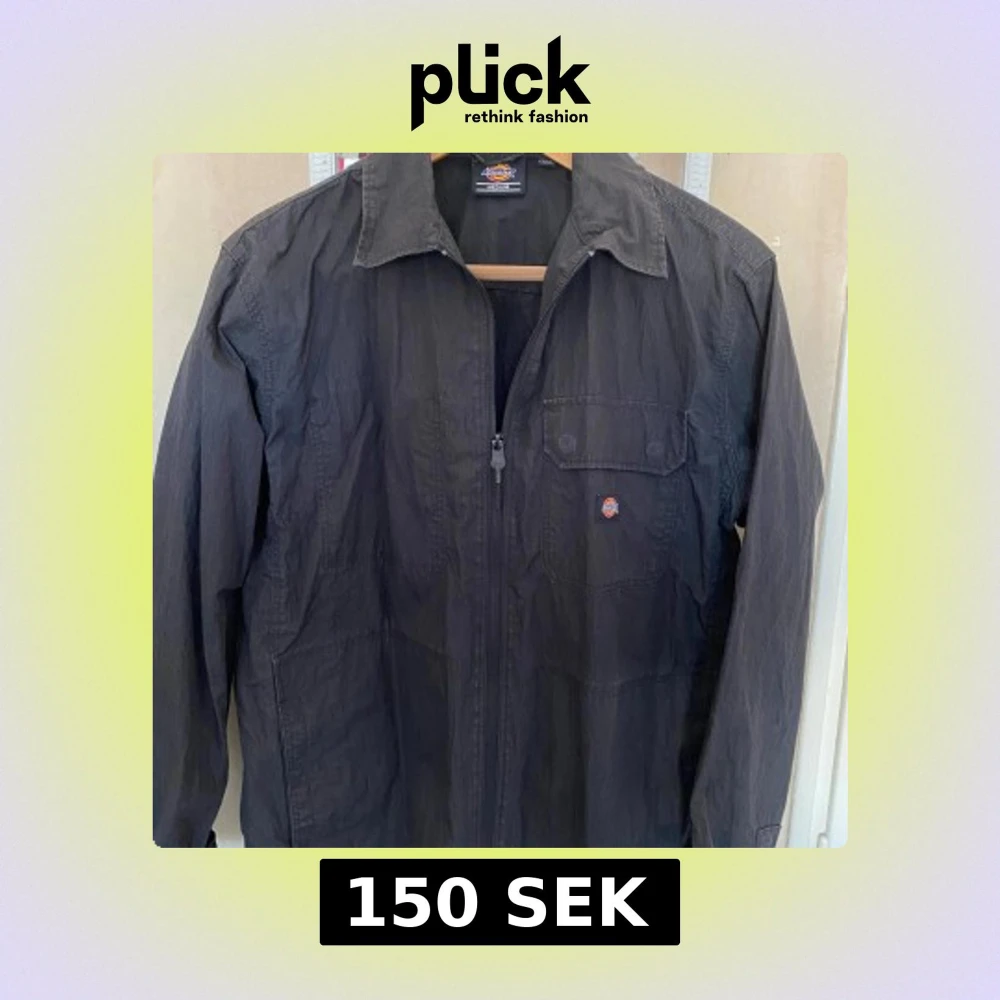 Säljer en svart jacka från Dickies med dragkedja och en bröstficka med knappdetalj. Jackan har en klassisk krage och långa ärmar. Perfekt för en stilren look.
