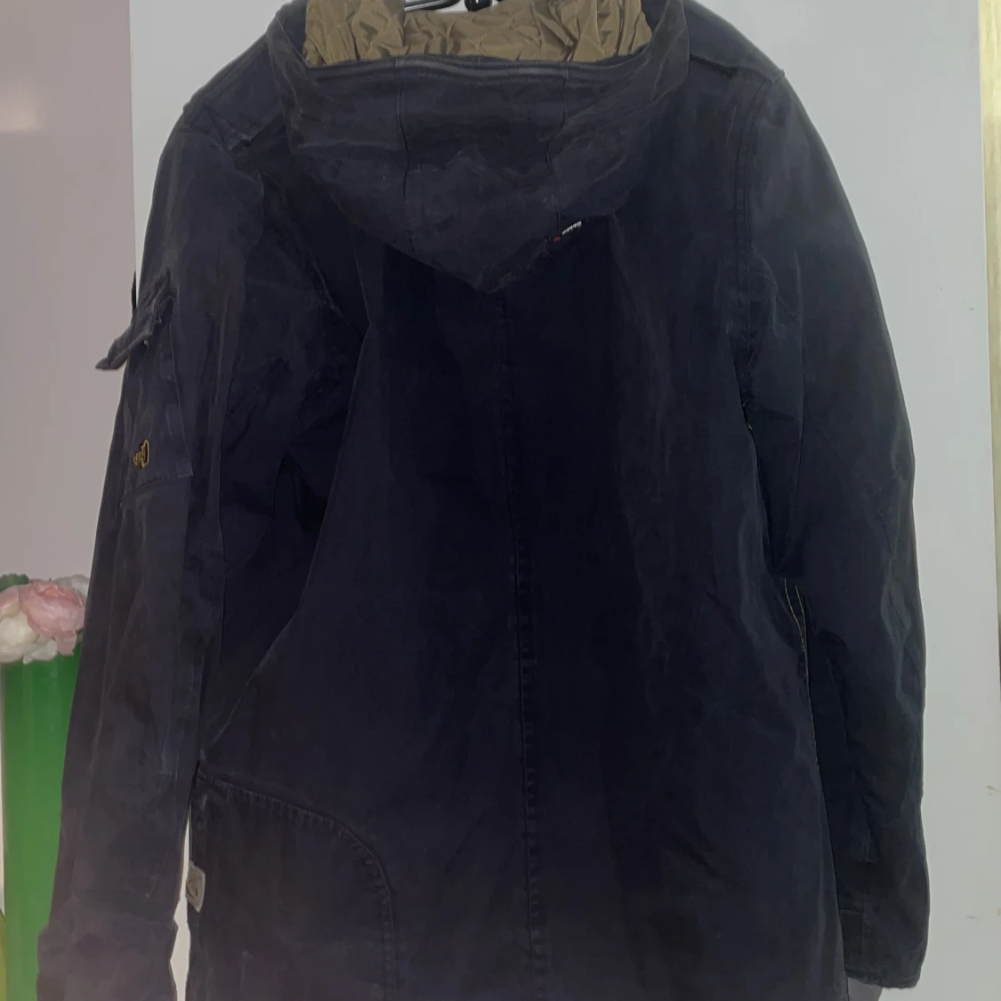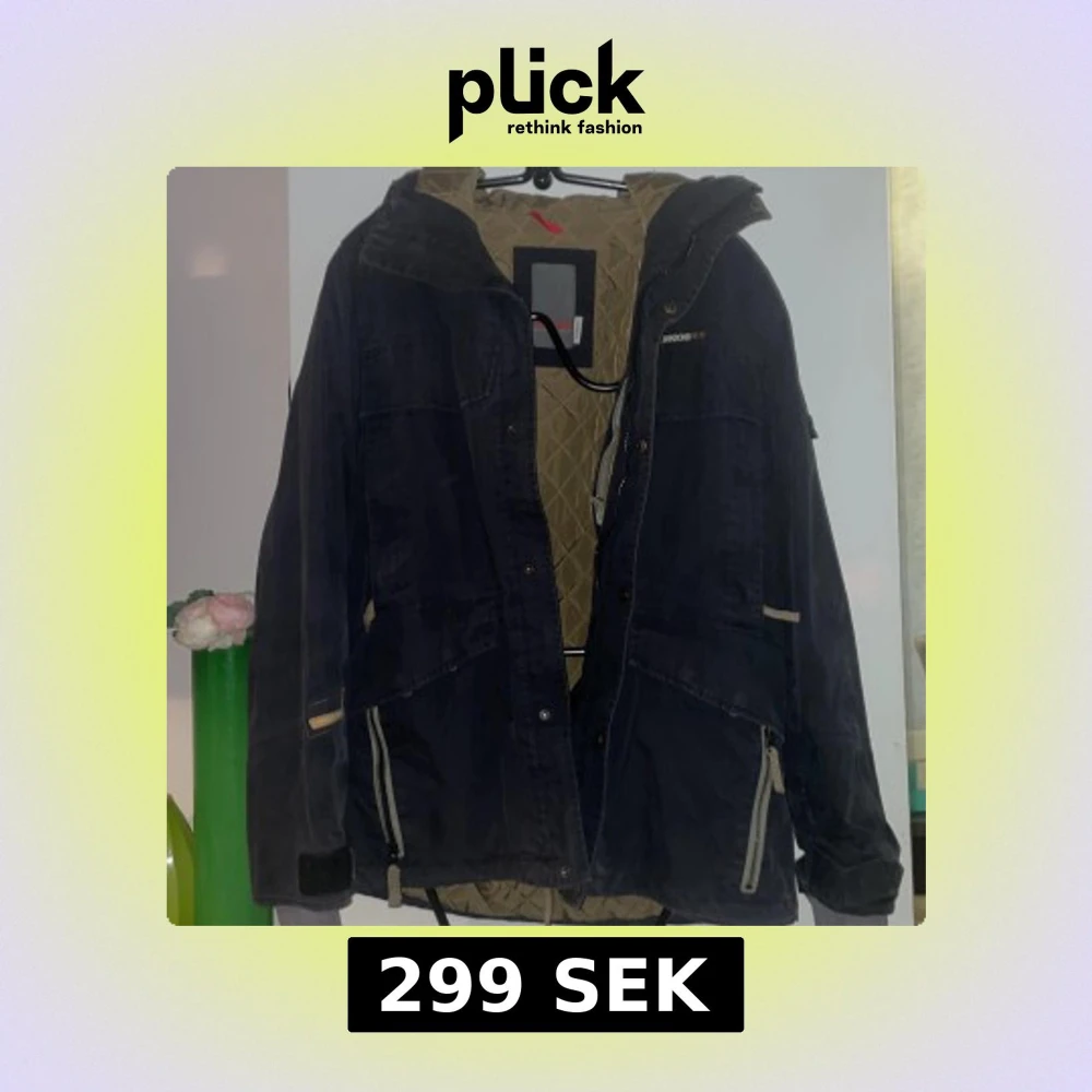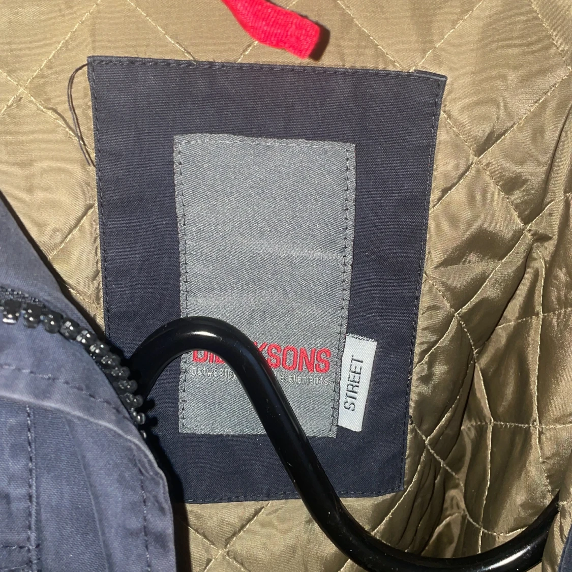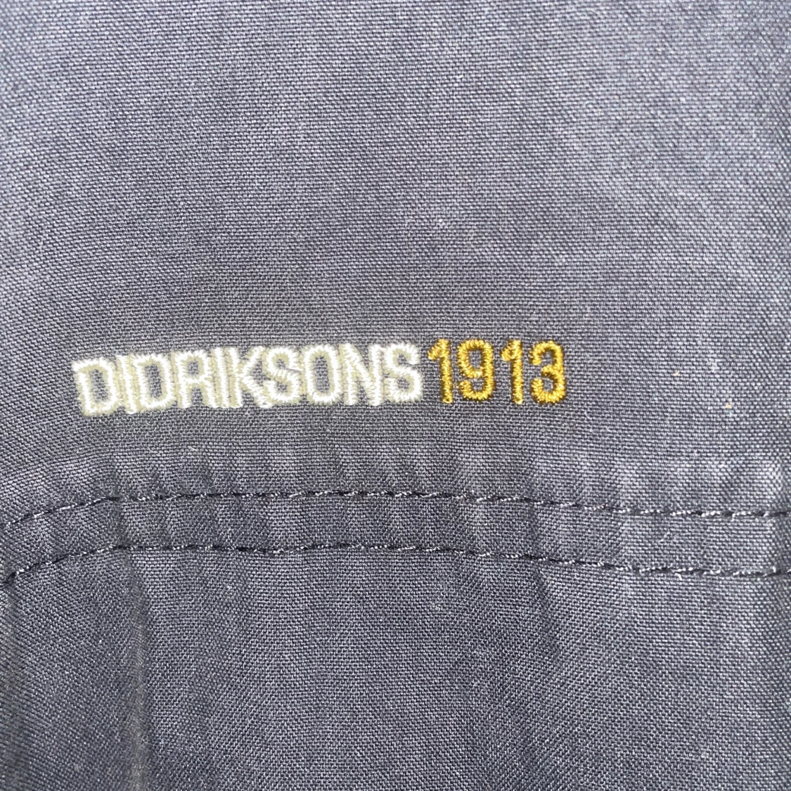 Säljer en blå jacka från Didriksons med quiltat foder och broderad logga. Jackan har dragkedja och knappar framtill samt praktiska fickor med dragkedjor. Perfekt för kyligare dagar.