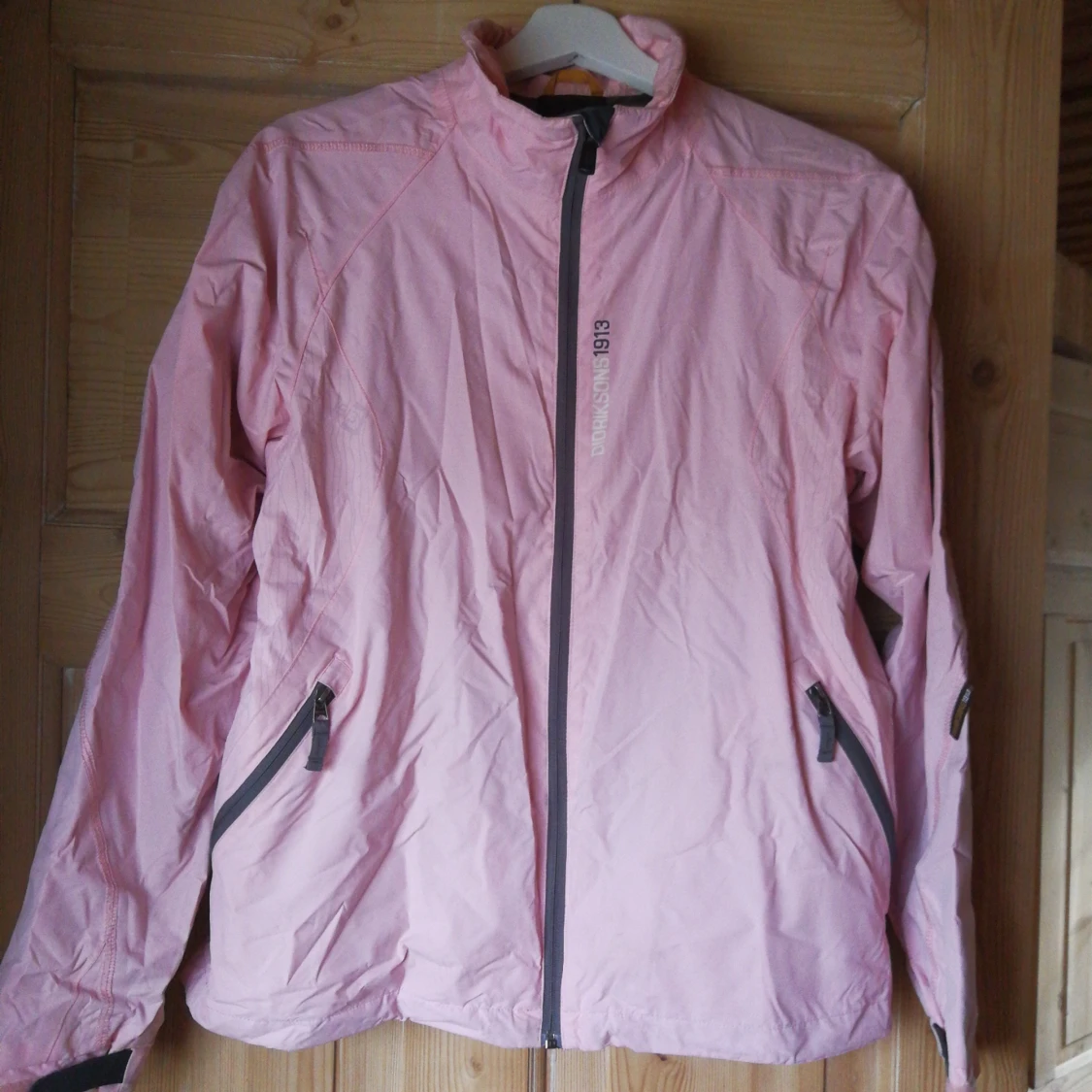 Ljust rosa regnjacka från Didrikssons. Använd fåtal gånger. Fina detaljer på sidorna. Köparen står för frakten.