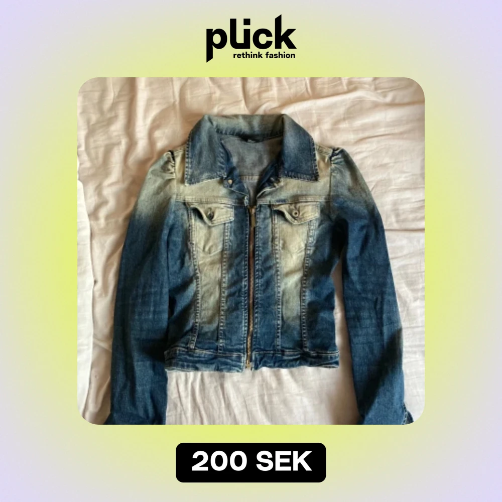 En snygg och trendig jeansjacka. Jackan är i en mörkblå färg med en blekt effekt. Den har en dragkedja framtill och fickor på bröstet. Jackan är i bra skick och har inte använts mycket. Den är äkta vintage från tidigt 2000tal.