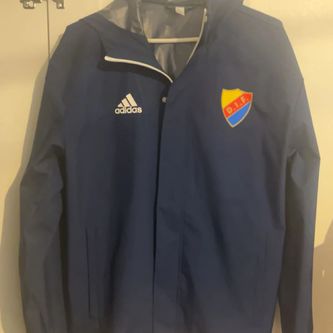 Säljer denna aldrig använda Djurgården vindjacka. Storlek S.