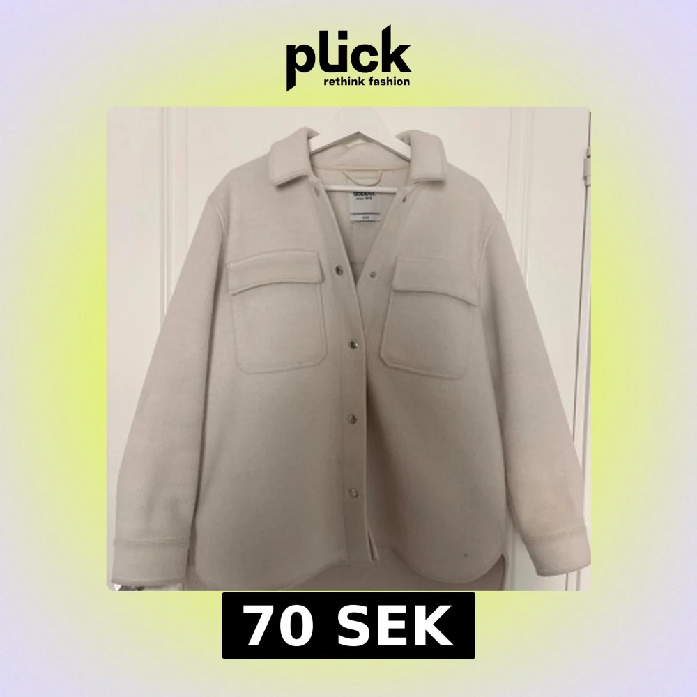 Säljer en beige overshirt från Dobber i storlek XS/S. Skjortan har en loose passform, två stora bröstfickor med lock och tryckknappar framtill. Materialet är mjukt och känns ulligt, perfekt för lager på lager. Snygg krage och rundad nederkant.