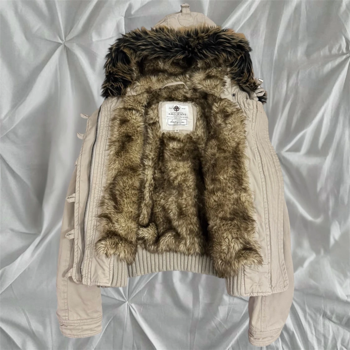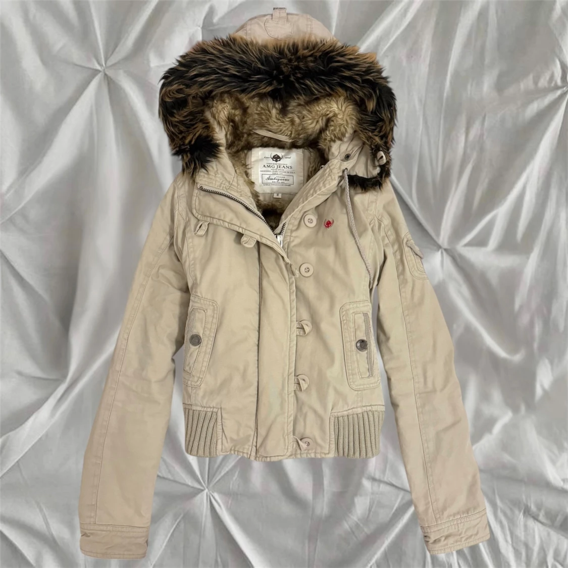 Abercrombie & Fitch liknande vintage jacka med luva och päls 🪽perfekt för höst/vinter 🪽passar storlek xs/s 💌Jag är öppen för att byta mot en jacka i liknande modell/stil!