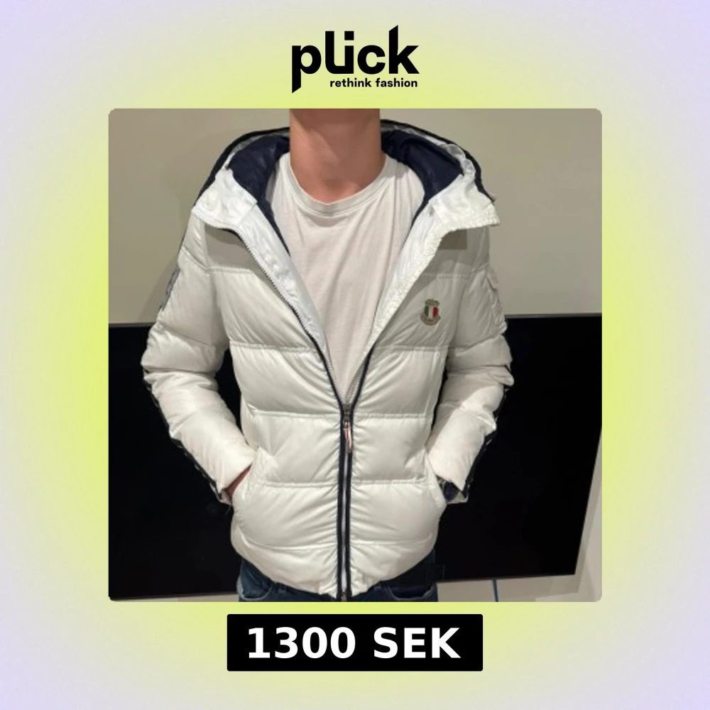 Säljer en snygg vit pufferjacka från Dolomite med broderad logga och text på ryggen. Jackan har huva, dragkedja framtill och flera innerfickor med coola detaljer. Insidan är marinblå och jackan har en modern, normal passform. Perfekt för kalla dagar!