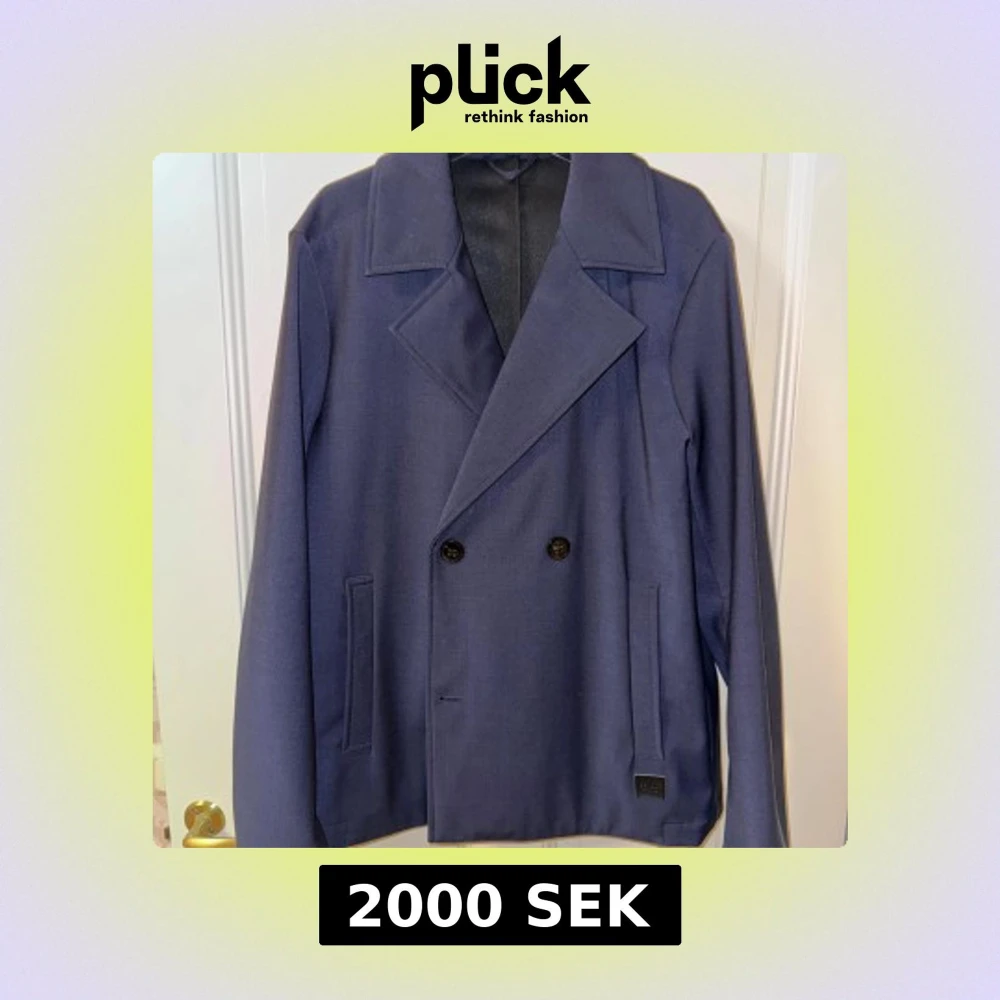 Säljer en stilren mörkblå skepparkavaj från Dondup, Made in Italy. Jackan har klassisk dubbelknäppning, bred krage och raka fickor framtill. Materialet är mjukt och känns lyxigt, perfekt för dig som gillar minimalistisk och snygg design.