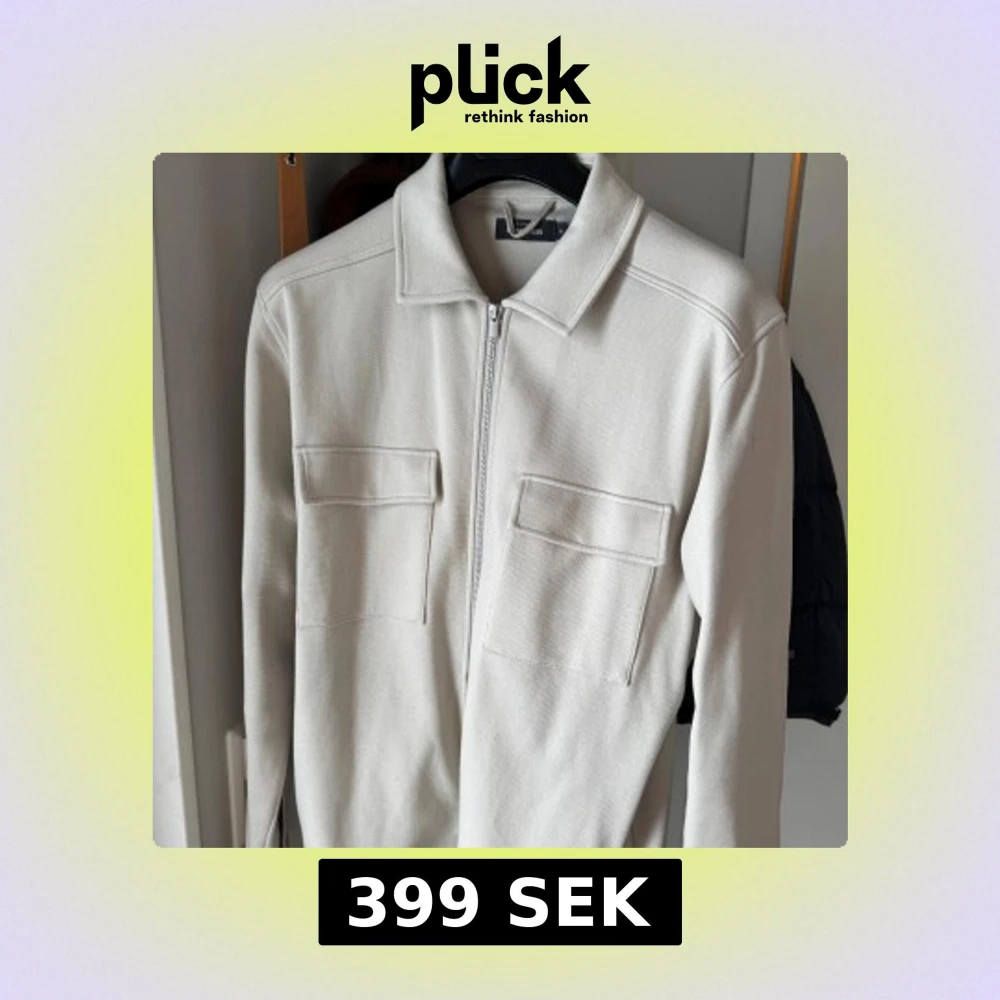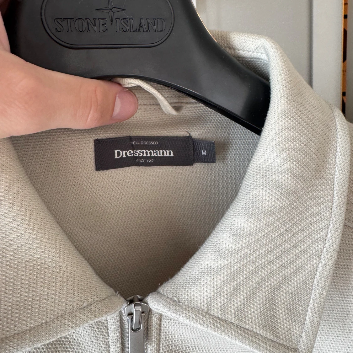 Stilren beige overshirt från Dressmann i storlek M. Jackan har två stora bröstfickor med lock, klassisk krage och dragkedja framtill. Materialet är bomull och ger en clean och modern look. Perfekt för lager-på-lager och enkel att matcha. Finns lite fläckar.