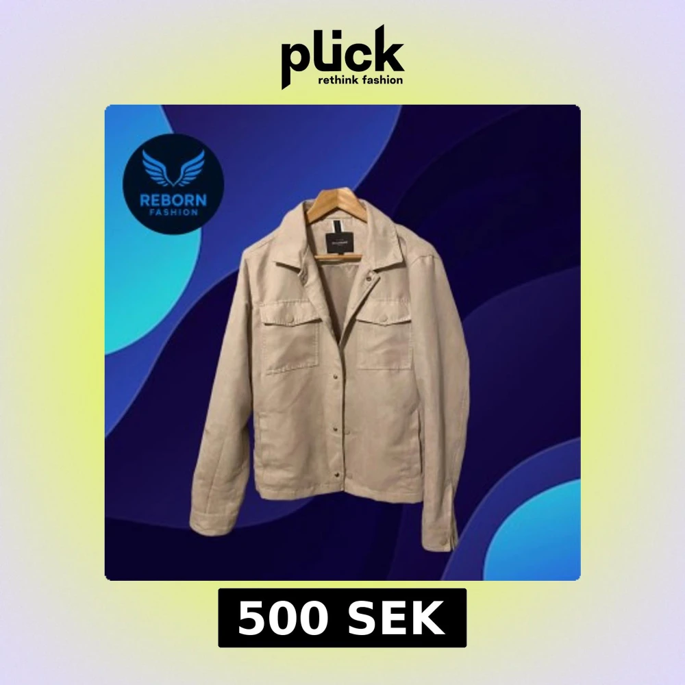 Stilren beige overshirt från Dressmann med klassisk krage, två bröstfickor med lock och tryckknappar framtill. Jackan är i mjuk mockaliknande syntet och har raka ärmar. Perfekt för lager-på-lager och enkel att matcha med det mesta. Används 3 gånger så nästan helt ny