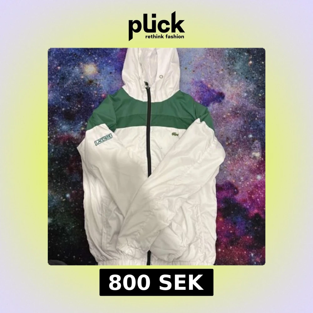 Säljer en stilren vit och grön vindjacka från Lacoste. Jackan har en dragkedja framtill och en justerbar huva. Perfekt för blåsiga dagar med sin lätta och bekväma design. Lacoste-loggan syns på bröstet och ärmen.