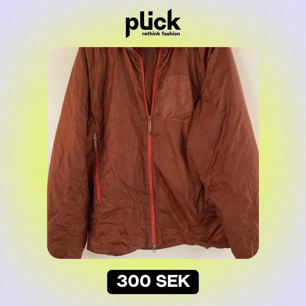 Toppenhärlig jacka, lätt vikt, kan användas istället för flis under vindjacka. Koppar/roströd med orange detaljer kring blixtlås.