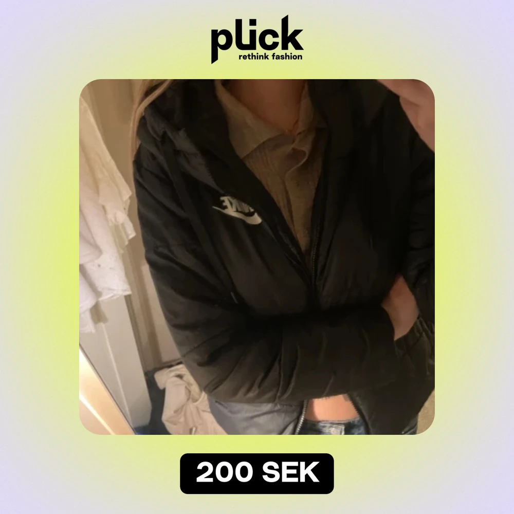 En dunjacka man kan vända utochin för att få en större Nike logga i ryggen. Med luva och fickor i sidorna. Använd några gånger men inga skador.