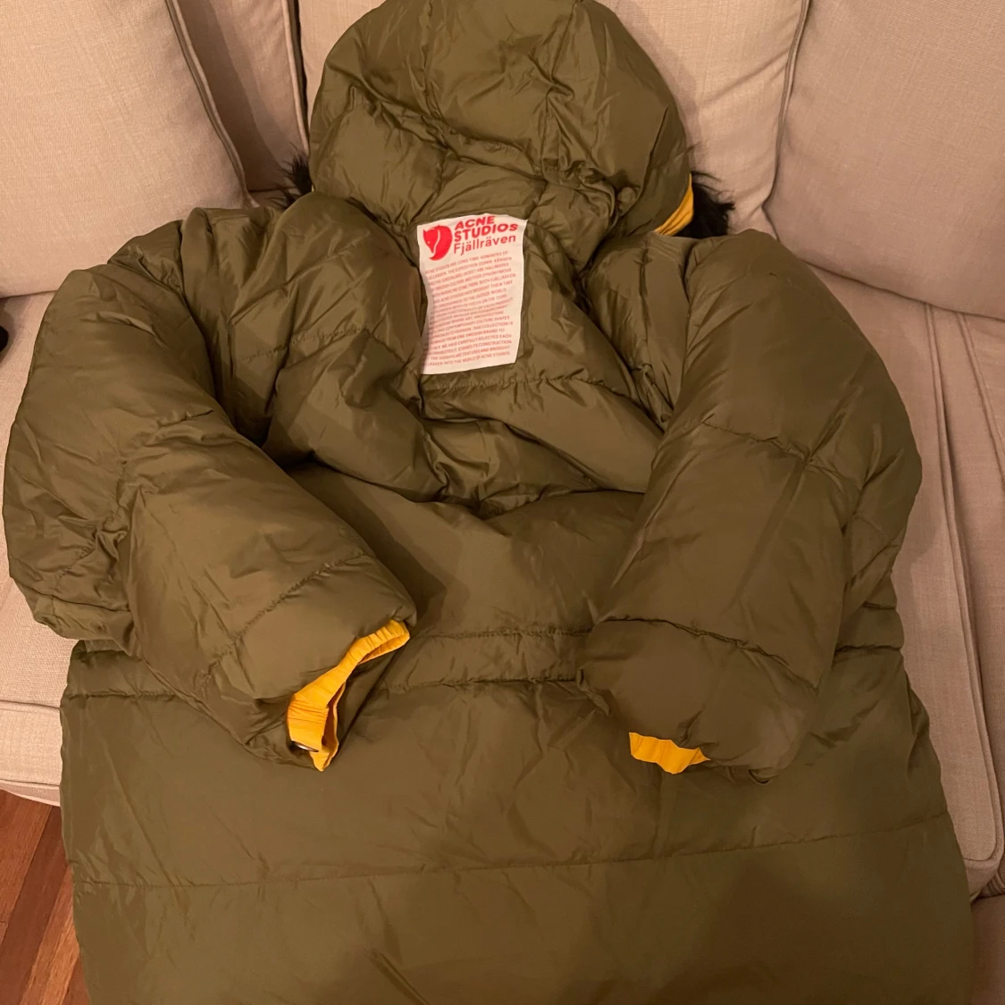 Gul dunjacka från Acne Studios x Fjällräven