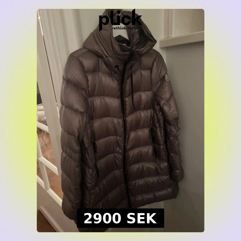Säljer en snygg mörkbrun dunjacka från Moncler med stor huva och svarta dragkedjor. Jackan är quiltad och har Moncler-logga på ärmen. Perfekt för kalla dagar och riktigt skön att bära. Fylld med äkta dun för maxad värme.