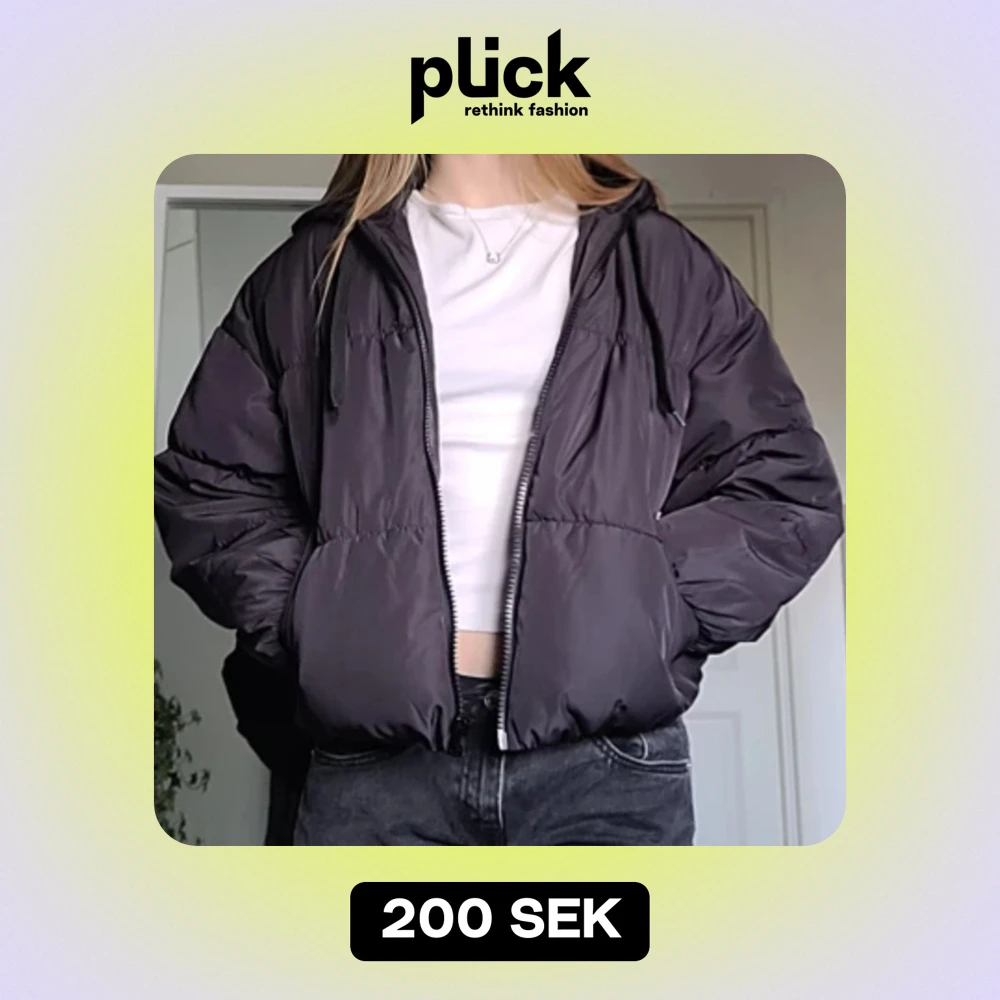 En svart dunjacka från H&M med huva. Använd 1-3 gånger, i bra skick.
