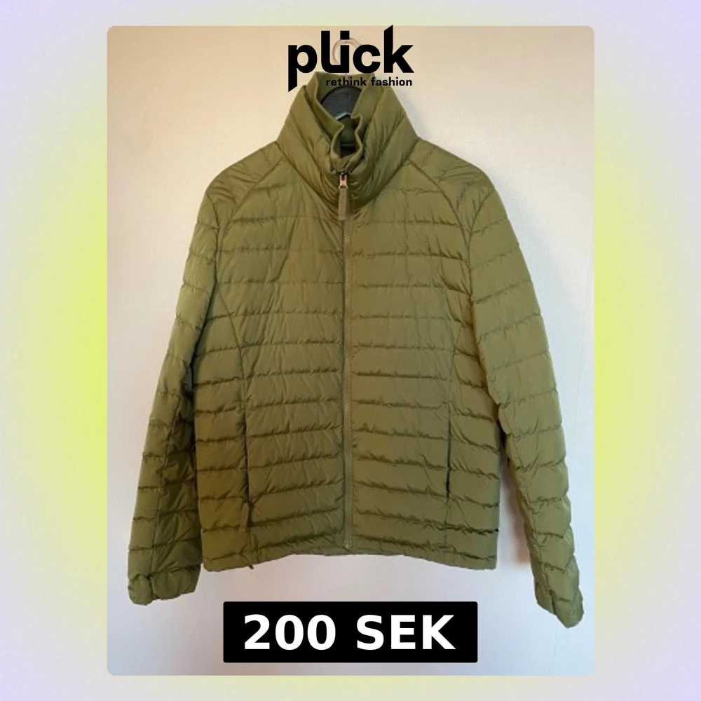 Säljer en olivgrön dunjacka från Dressmann med hög krage och dragkedja framtill. Jackan har quiltad design och praktiska fickor både på utsidan och insidan. Perfekt för kyliga dagar och riktigt snygg till jeans eller cargo.Den är som ny.