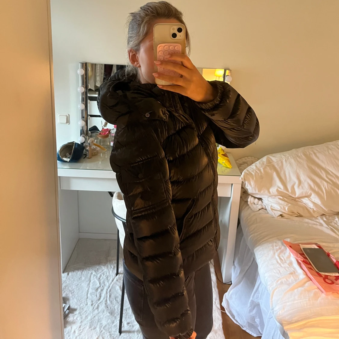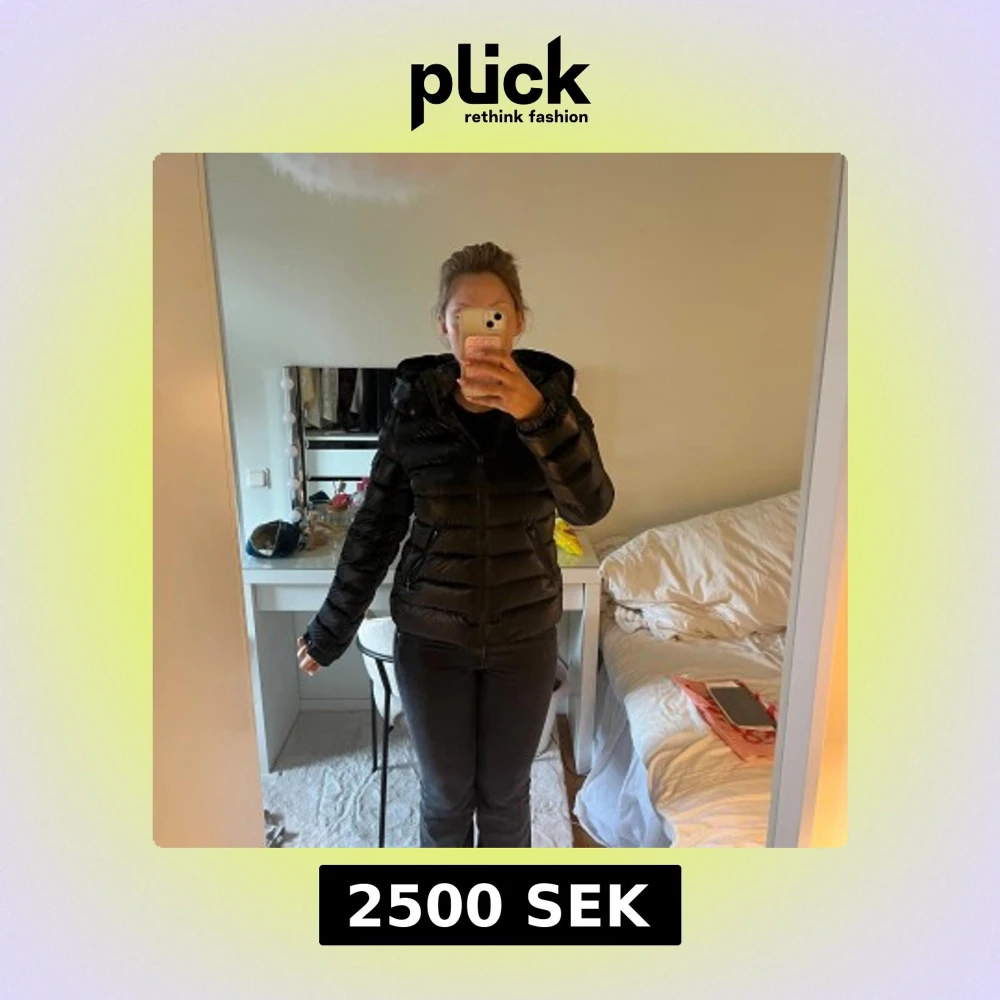 Säljer en svart bady down jacket från Moncler med huva och dragkedja. Jackan har en glansig finish, quiltad design och långa ärmar. Perfekt för kalla dagar och riktigt snygg till streetwear. Klassisk Moncler-detalj på ärmen i svart. Tyvärr defekter, vid ärmar & armhålor. Det syns knappt och påverkar ej jackans funktion. Kvitto och ärlighetsbevis medkommer! Storlek 14Y & passar mig som är en S, passar mig även när jag har hoodie/stickat under🩷hör av er vid frågor!