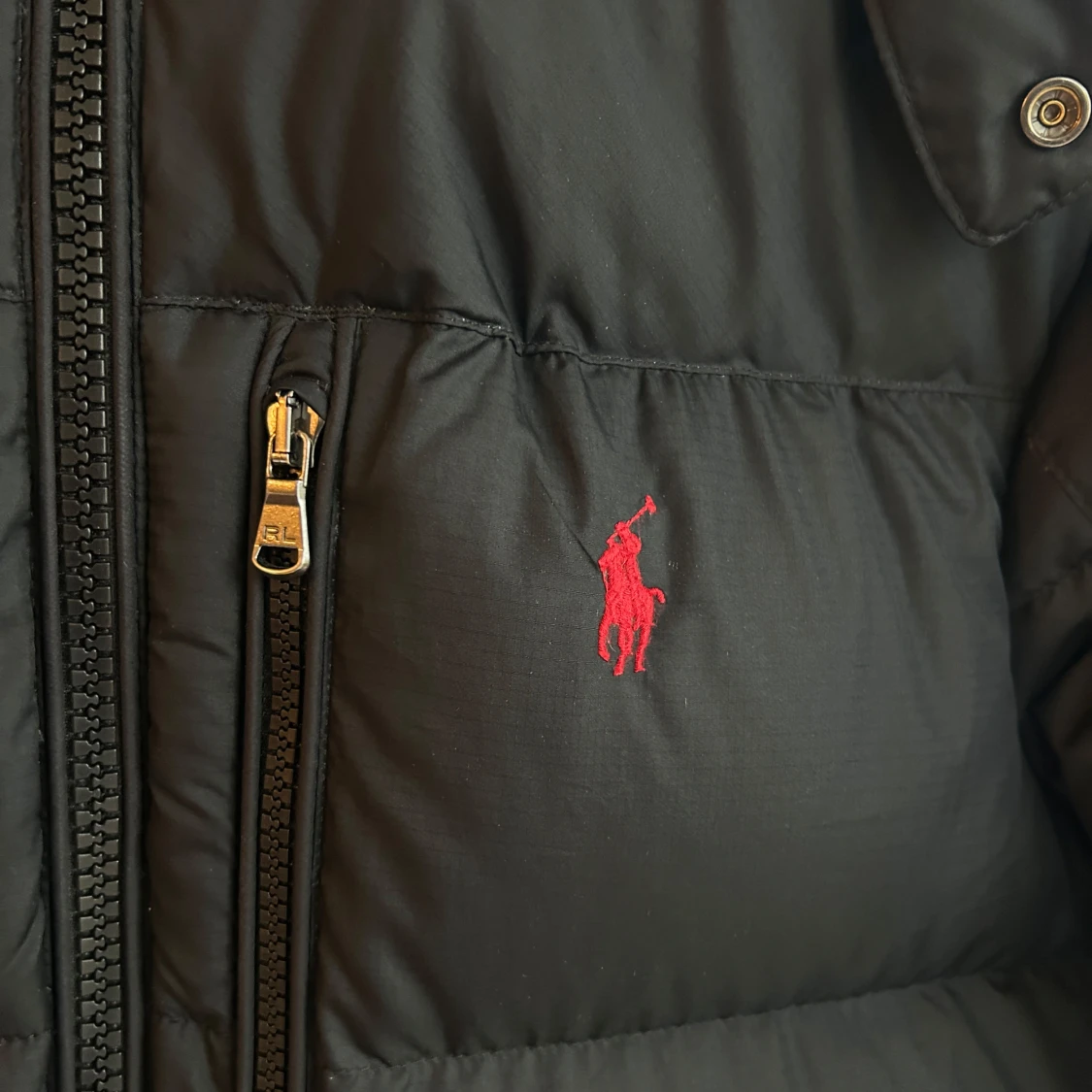 Svart dunjacka från Ralph Lauren Polo med röd logga på bröstet. Jackan var en dragkedja framtill, en bröstficka, två sidfickor samt en innerficka. Jackan har justerbara snören vid fållen så du kan vika upp den, går att justera bra. Äkta Dun! Har även orderbekräftelse. Säljer då den inte kommer till användning. Med Vänliga Hälsningar Thor!