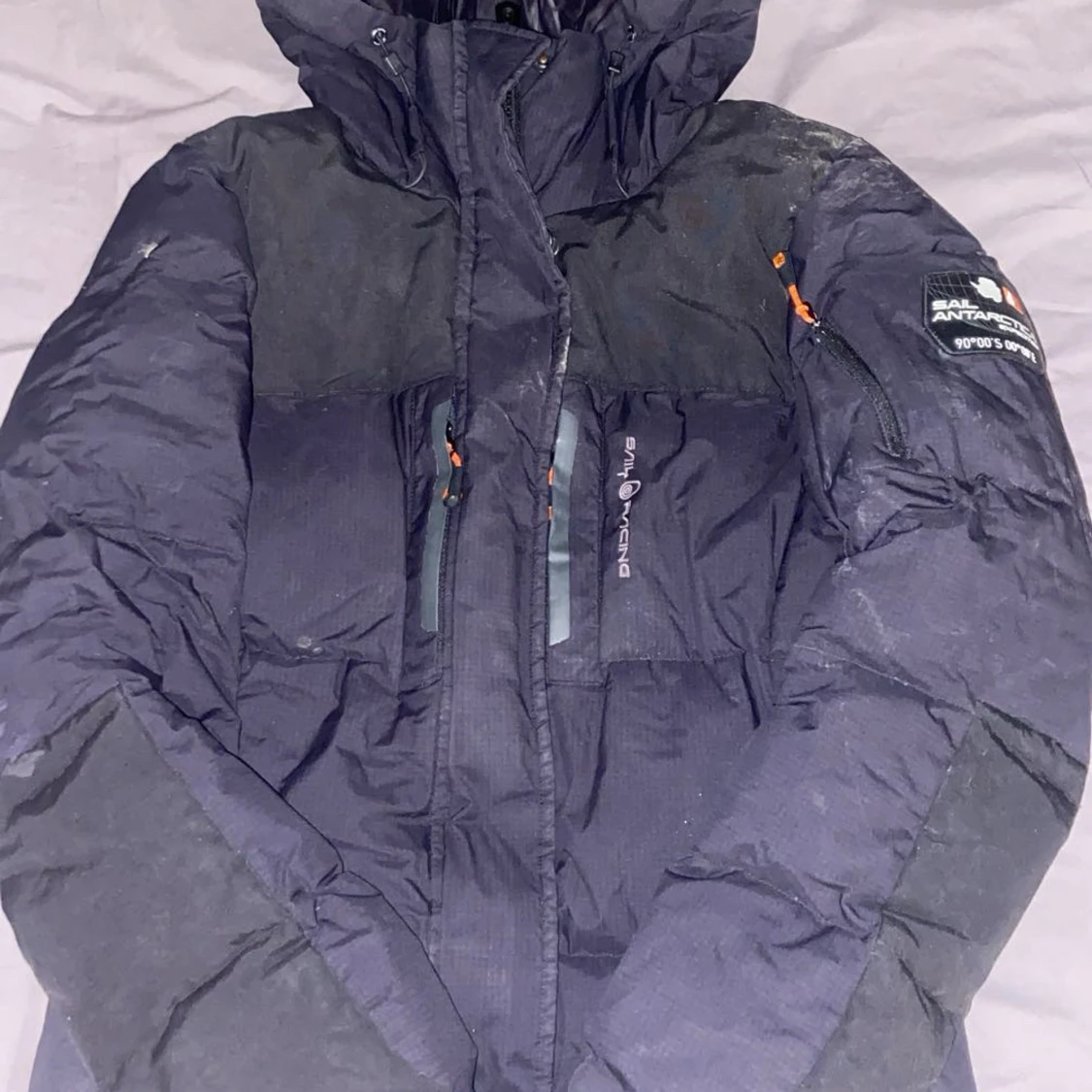 Säljer en dunjacka från Sail Racing. Jackan har huva, flera dragkedjeförsedda fickor och coola detaljer med logga på ärmen. Väldigt varm. några små ”hål” på ryggen, kolla sista bilden❤️förhandlingsbart!