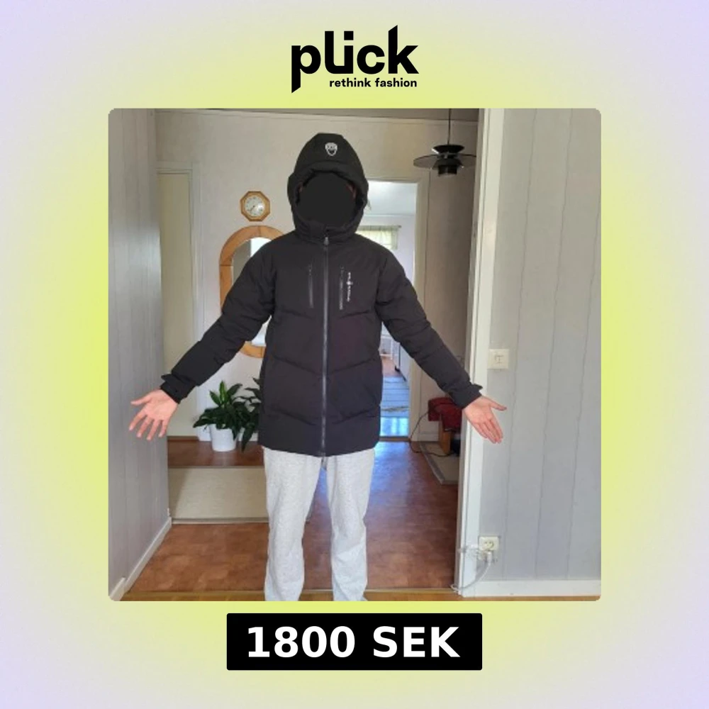 Säljer en svart dunjacka från Sail Racing med huva och dragkedjor framtill samt på bröstfickorna. Jackan har en stilren design och är perfekt för kyligare dagar. Logotypen är tryckt på bröstet och jackan har en pufferstil. Använd i 1 vinter bara. Skriv bara kring frågor. Passar både M och S beroende på hur långt ner man vill att jackan ska gå. Modellen är 170cm lång.