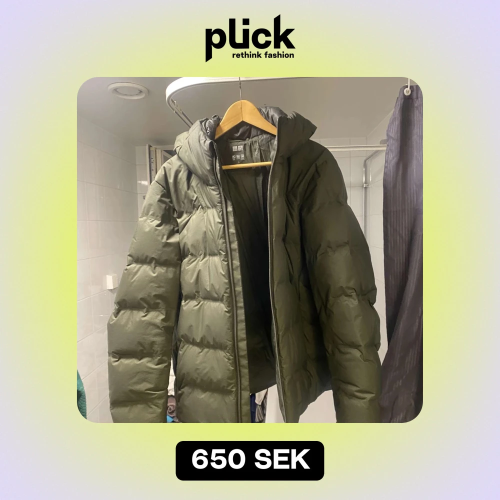 Säljer en grön dunjacka från Uniqlo i storlek L. Jackan är lätt och vindtät med hållbar vattenavvisning, perfekt för kyliga dagar. Den har en dragkedja och en huva för extra skydd. Passar bra till både höst och vinter. Knappt använd så i mycket bra skick!