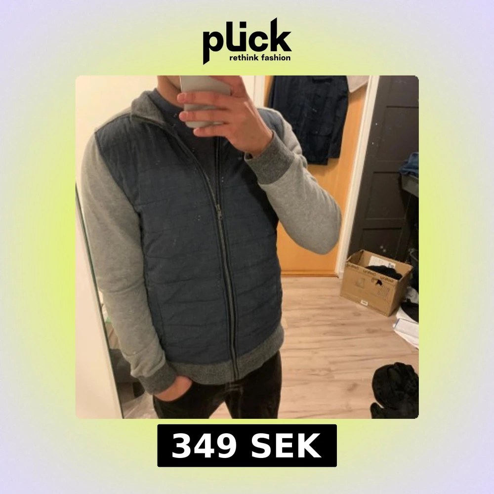 Säljer en stilren pufferjacka med grå ärmar och blå kropp. Jackan har hel dragkedja framtill, ribbade muddar och huva. Perfekt för dig som vill ha en chill och enkel look till vardags. Passar dig som gillar bekväma och snygga jackor. Nypris:1399Kr