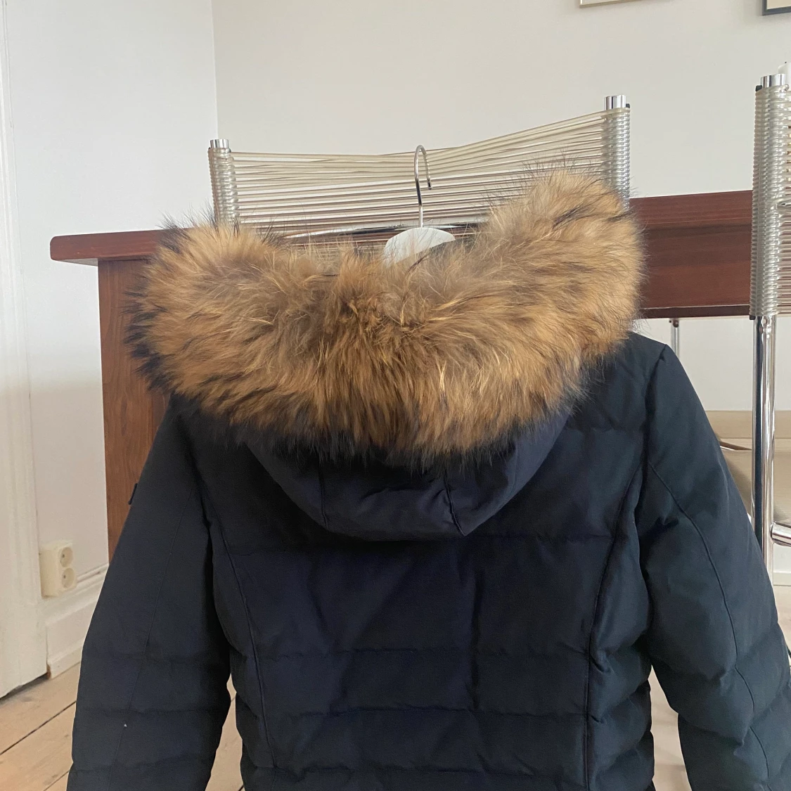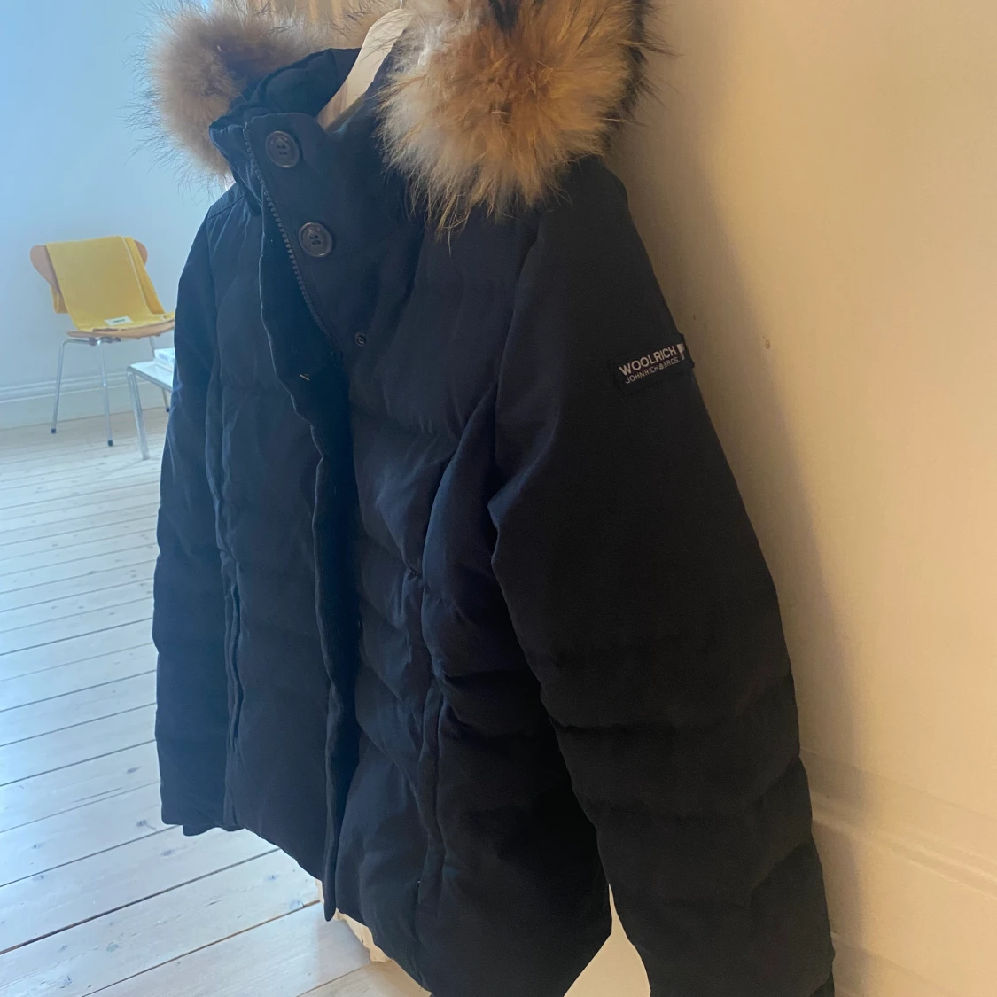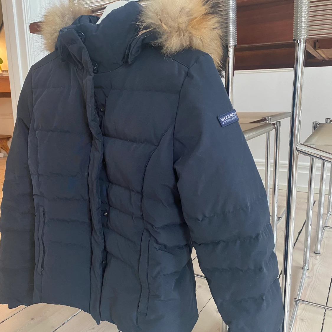 Fin mörkblå dunjacka från Woolrich i storlek S. Fint skick! Dyr vid inköp.