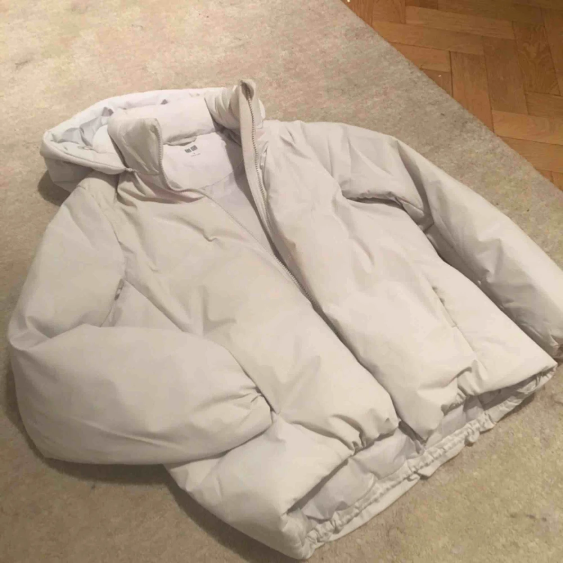 Som ny! Superfin ljusgrå jacka från UNIQLO. Köpt för 1300kr (påse & kvitto kvar) Inre och yttre fickor me mysigt foder i. Luvan är avtagningsbar, snygg både med och utan. Riktigt varm och 100% regnsäker.