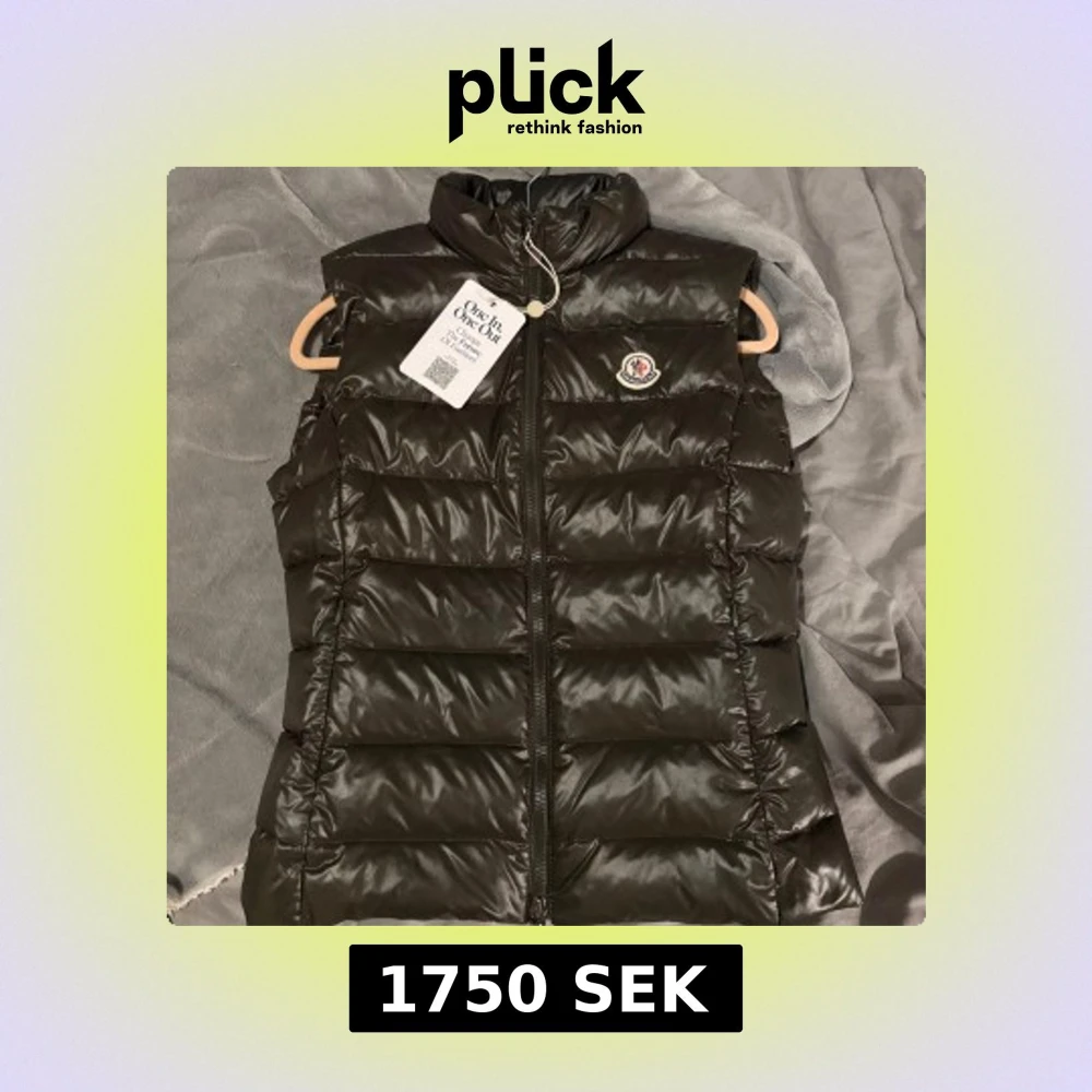 Snygg mörkgrön dunväst från Moncler, stl 1. Super cool färg och sälj på grund av för liten i storlek. Köpt på Vestiaire Collective och genomgått äkthetskontroll, etikett finns kvar från kontroll.
