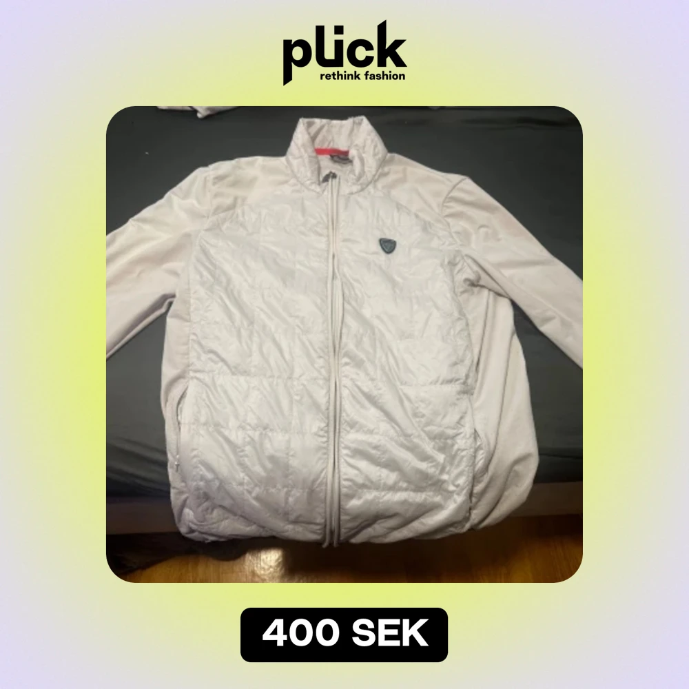 Säljer en snygg vit jacka från Emporio Armani. Den har en quiltad design framtill och en dragkedja med EA7-logga. Perfekt för en stilren look! obs har lite skador men inget farlig skriv privat om ni vill ha mer bilder