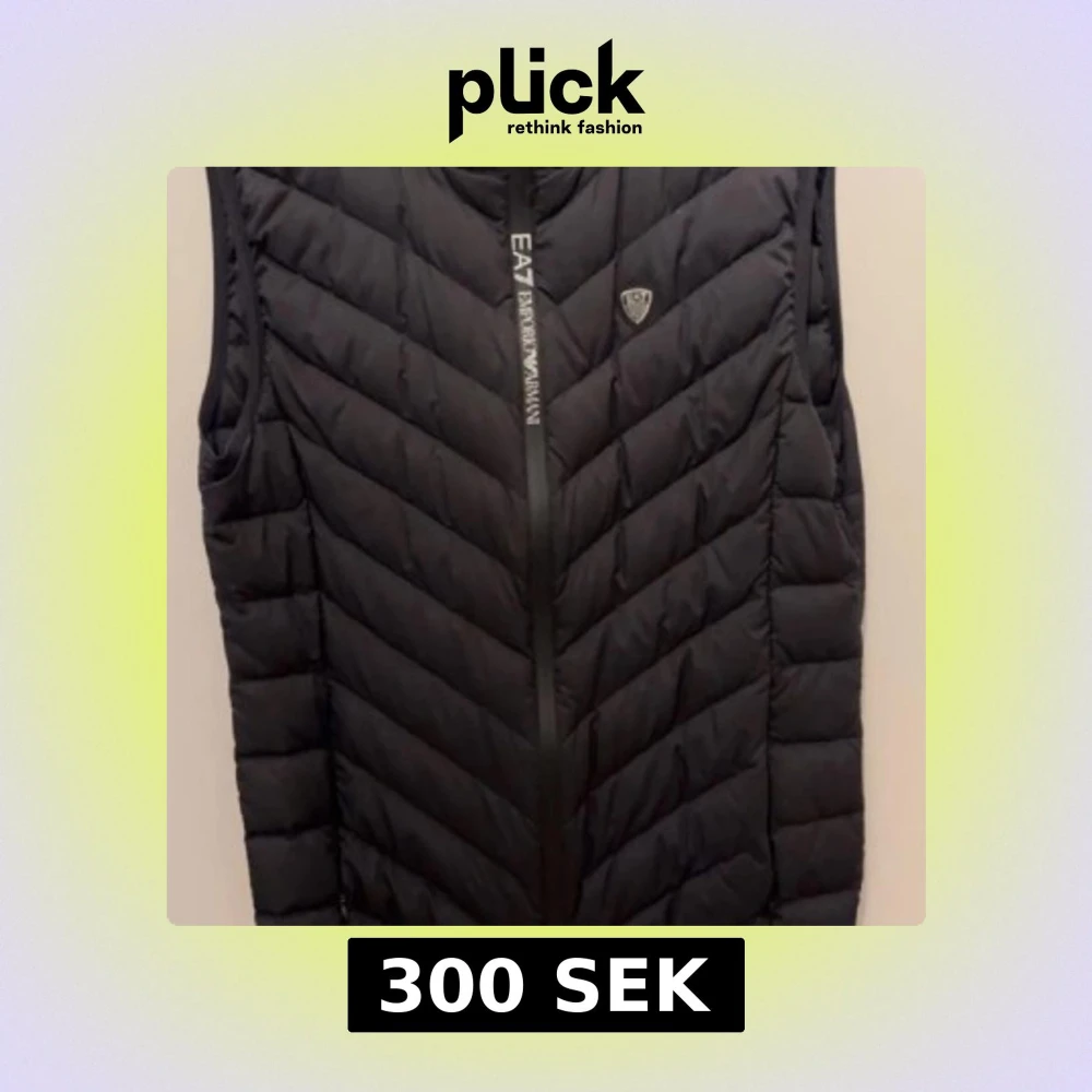 Snygg svart dunväst från EA7 Emporio Armani med dragkedja framtill. Västen har ett quiltat mönster och en liten logotyp på bröstet. Perfekt för kyligare dagar.