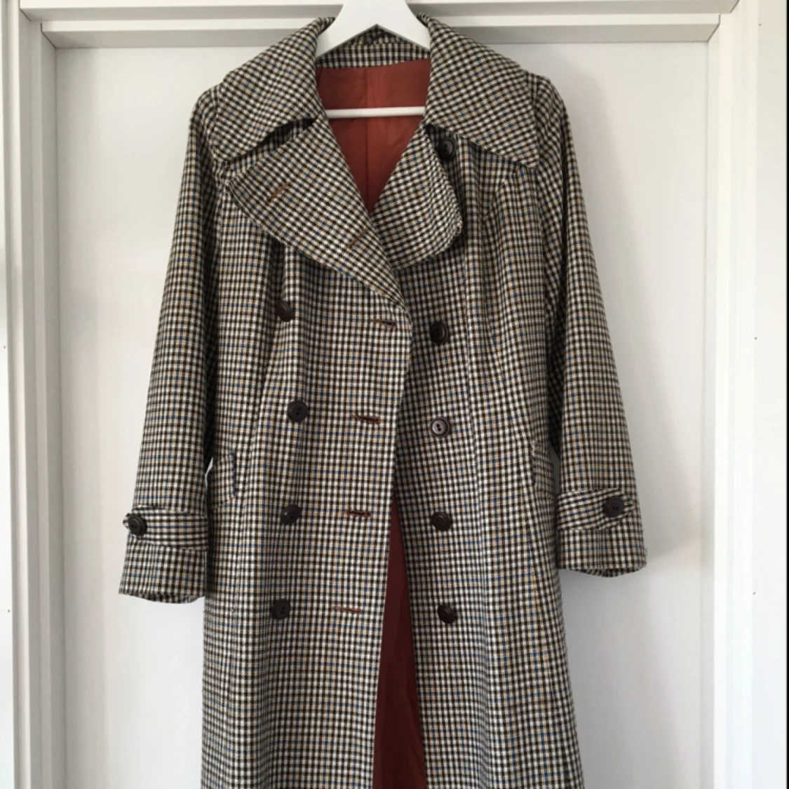 Lång vintagekappa, välskött och använd en gång av mig. Helt innerfoder och djupa fickor. Passar vår- & höstsäsong! Size 12 enligt insidan av plagget, ca 40-42.