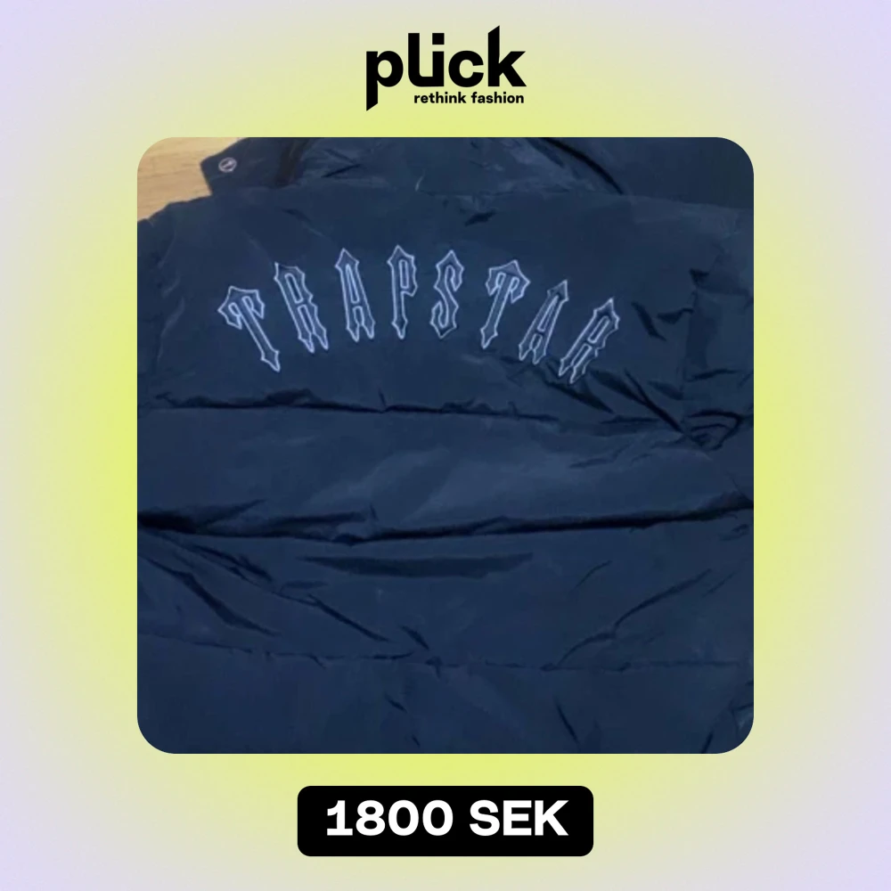 Säljer en svart pufferjacka från Trapstar i storlek M. Jackan har en cool broderad logga på ryggen och en rund emblem på bröstet. Den är perfekt för kalla dagar med sin quiltade design och dragkedja framtill. Passar både till vardags och fest!