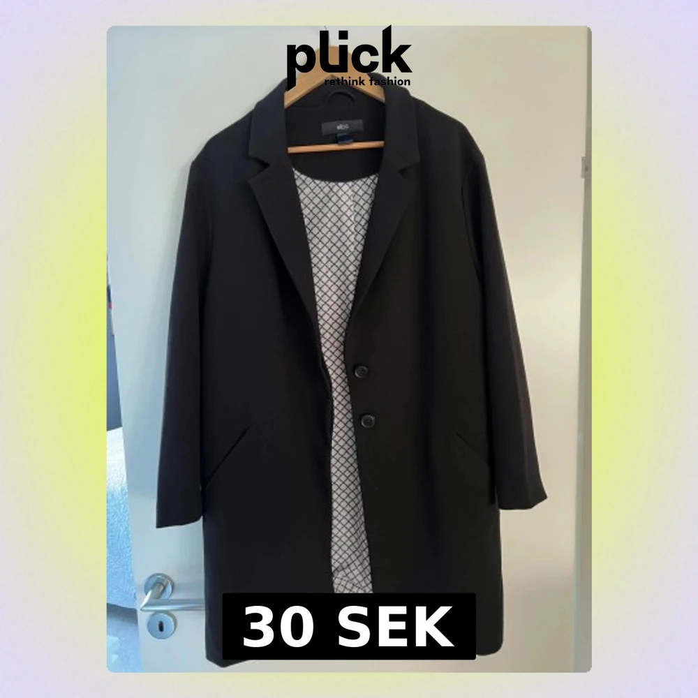 Stilren svart kappa från Ellos i klassisk rak modell med krage och två knappar framtill. Fodret har ett diskret rutmönster. Jackan har långa ärmar och två snedställda fickor. Perfekt för dig som gillar en clean och tidlös look.
