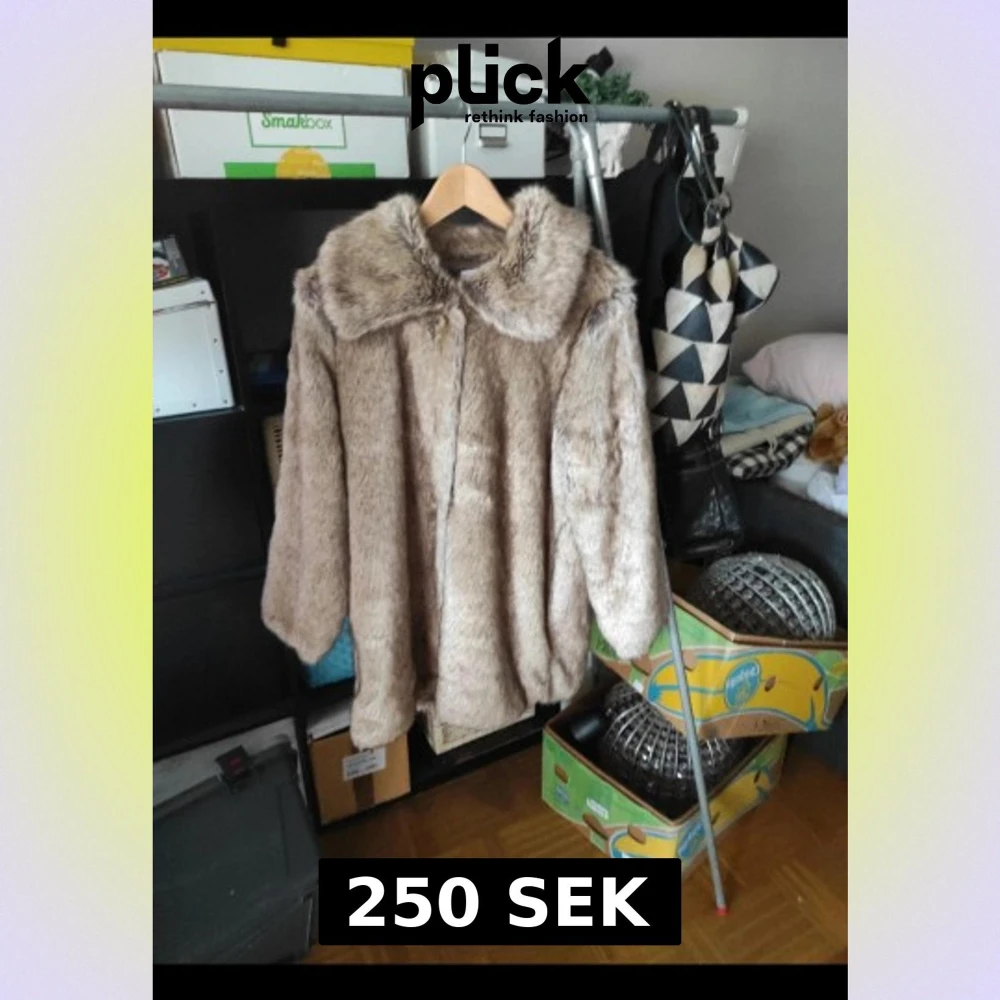 Säljer en fluffig och snygg beige pälsjacka från Ellos i storlek 40. Jackan har bred krage, långärmad design och är helfodrad på insidan. Perfekt för dig som vill ha en varm och trendig look under höst och vinter. Färgen är naturligt beige med lite mörkare toner. Djur finns i hemmet