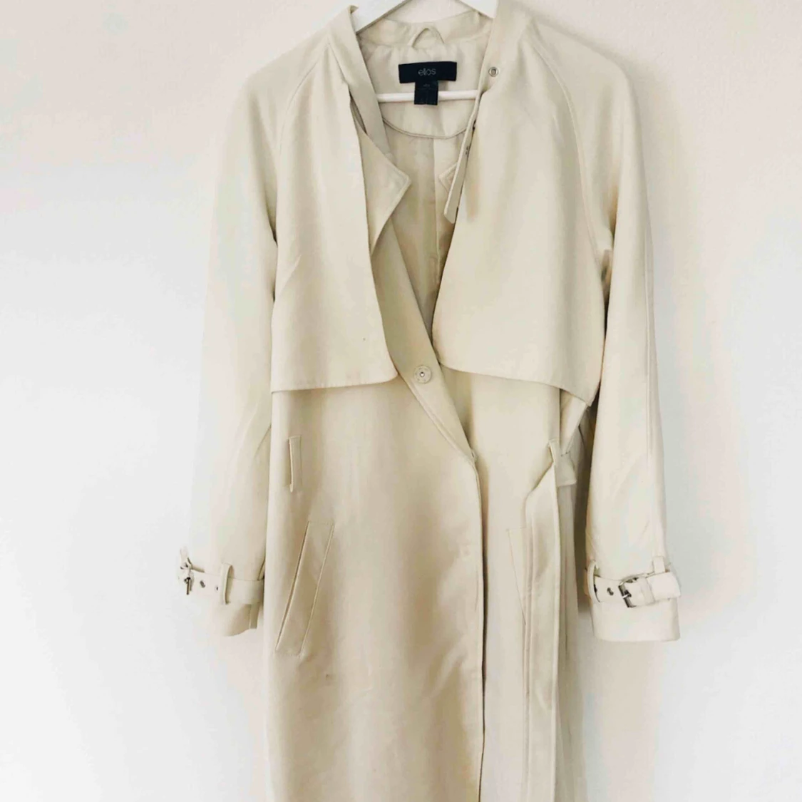 Vit kappa från ellos, strl 40. Knappar samt band i midjan. Spänndetalj i ärmslut och spänndetalj vid krage.