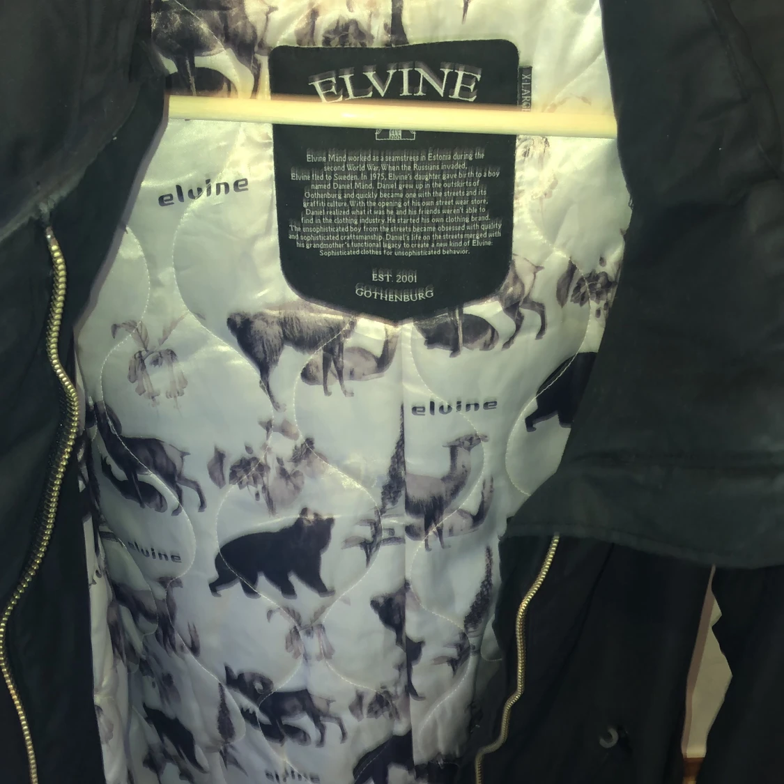 Winter jacket from Elvine, its mid-height fits above the knees. It’s suitable for cold winter especially for windy days. It’s used but in good condition