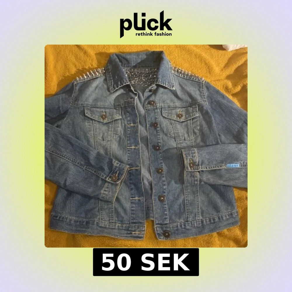 Snygg blå jeansjacka från DS.JEANS med coola silvriga nitar över axlar och övre rygg. Klassisk modell med knappar framtill, bröstfickor och långa ärmar. Perfekt för dig som vill sticka ut med en edgy vibe.