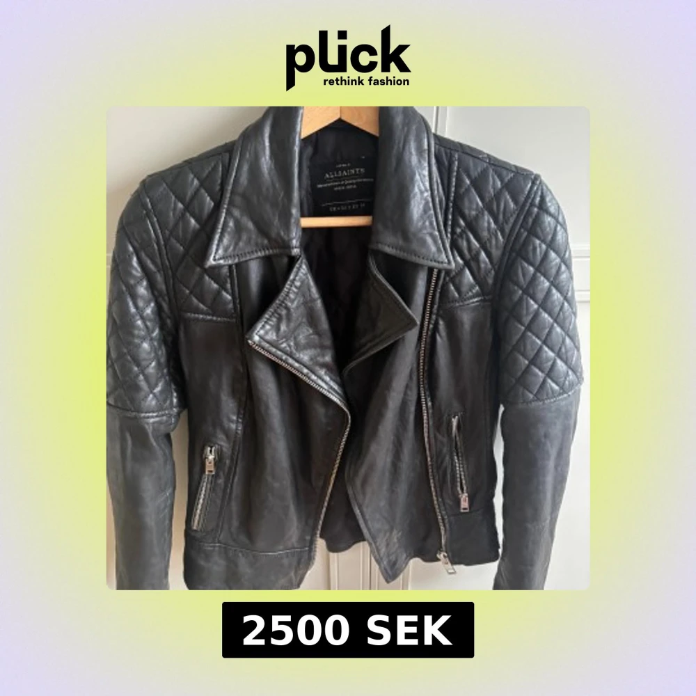 Snygg svart skinnjacka från AllSaints med quiltade axlar och ärmar, coola dragkedjor och spännen i midjan. Jackan har klassisk bikerstil med bred krage och detaljer i silver. Perfekt för dig som vill ha en edgy look. Knappt använt köpt i London.