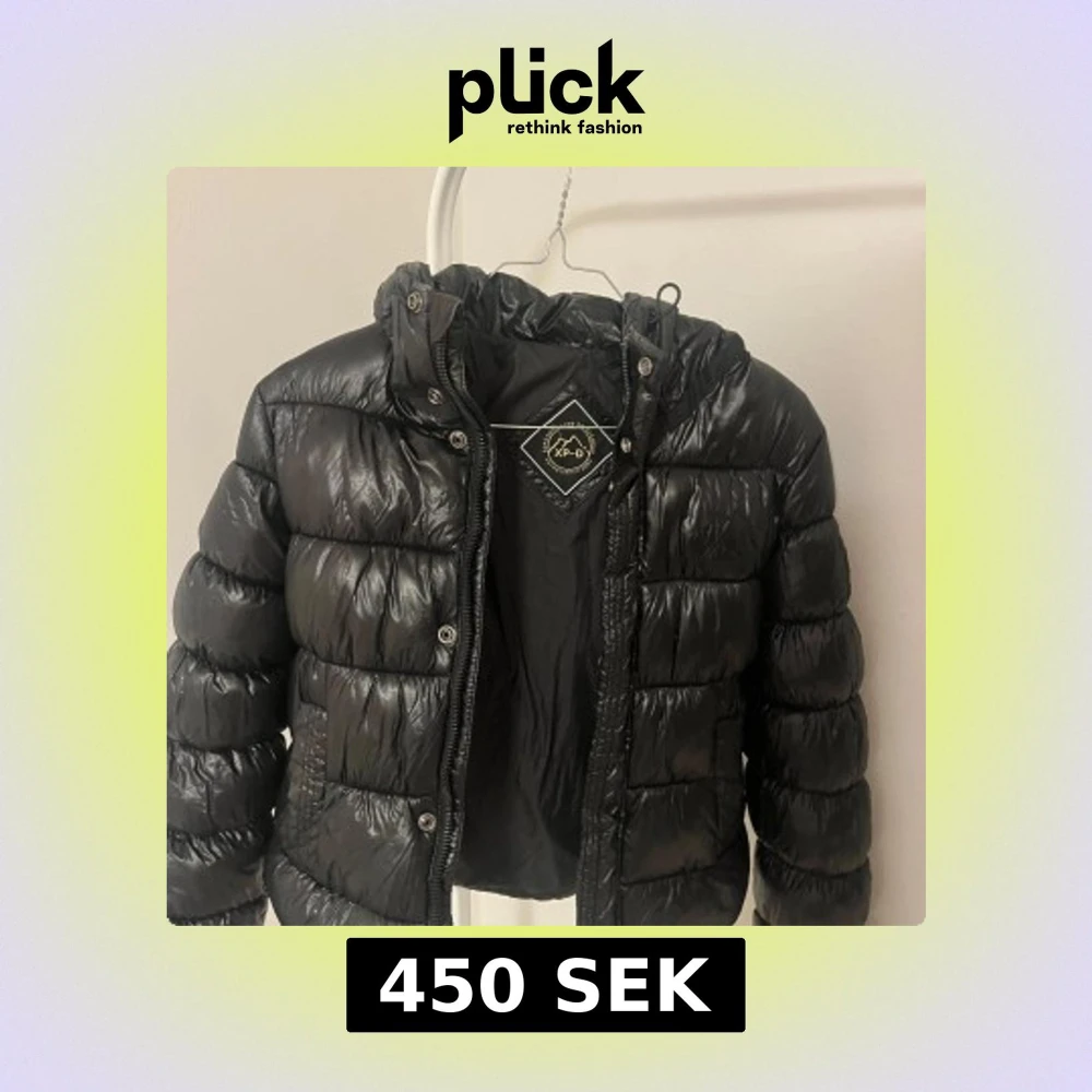 Säljer en svart pufferjacka från XP-D i storlek 36. Jackan har en glansig finish, huva och dragkedja med tryckknappar. Den är vadderad, perfekt för kalla dagar. Inga skador